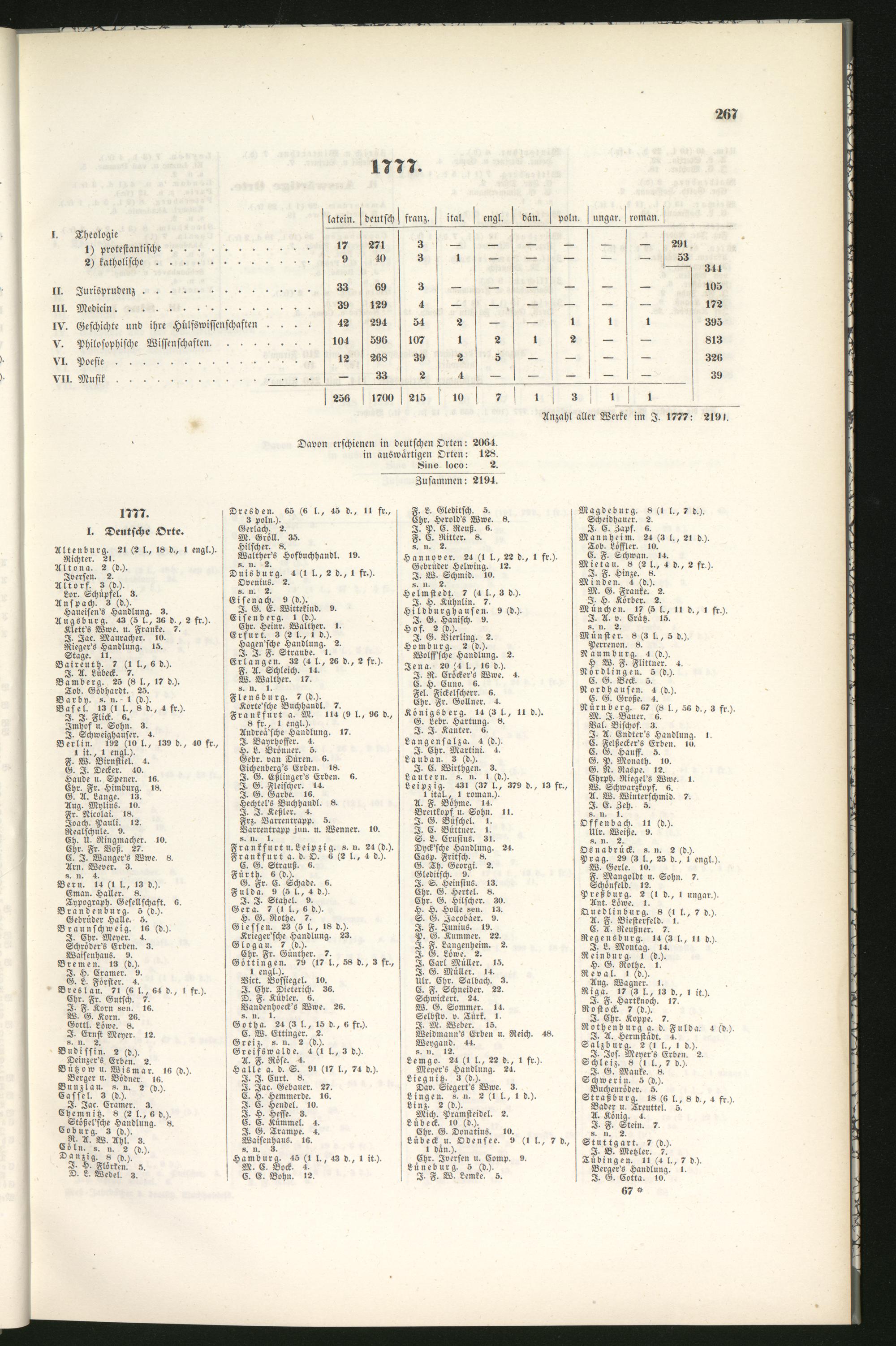 Anzahl aller Werke im I. 1777: 2191.