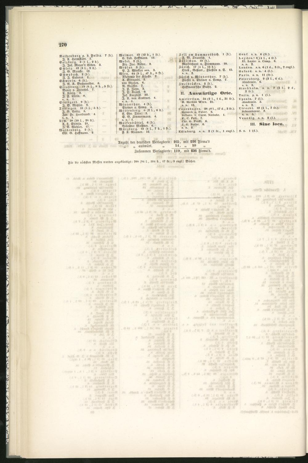 Anzahl der deutschen Verlagsorte: 103, mit 226 Firma's„ „ auswart. „ 14, „ 10 „