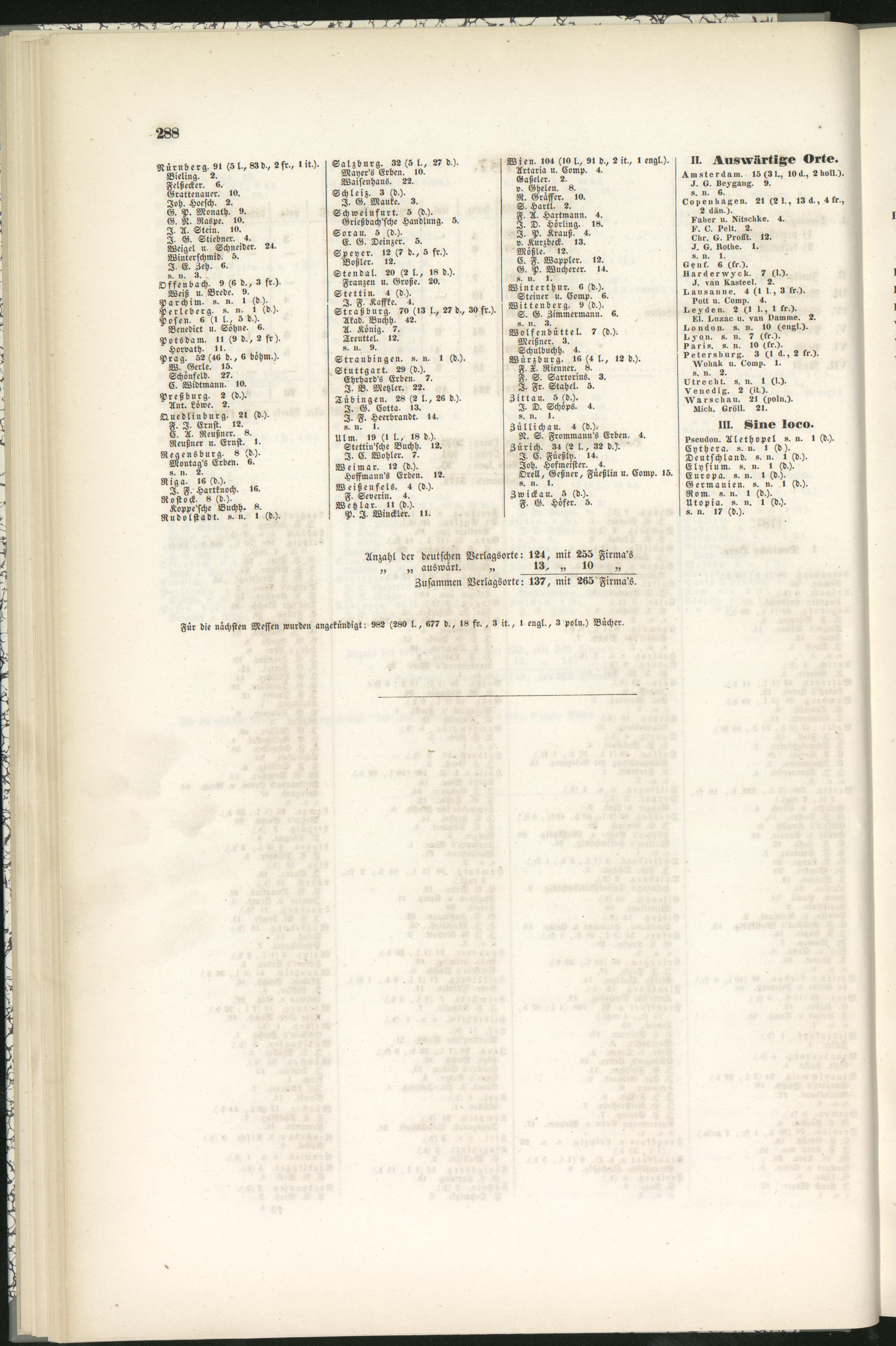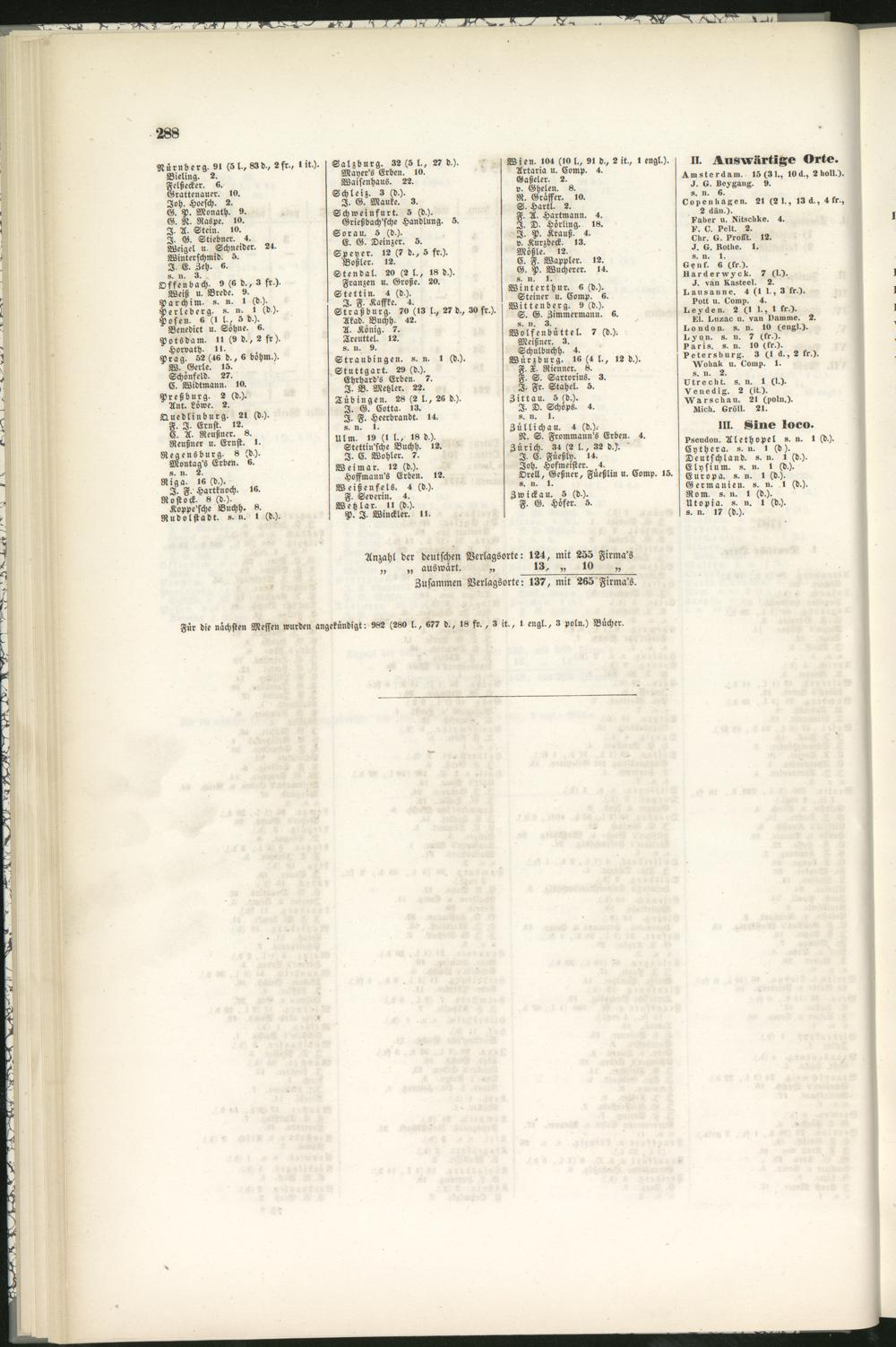 Anzahl der deutschen Verlagsorte: 124, mit 255 Firma's„ „ auswärt. „ 13, „ 10 „