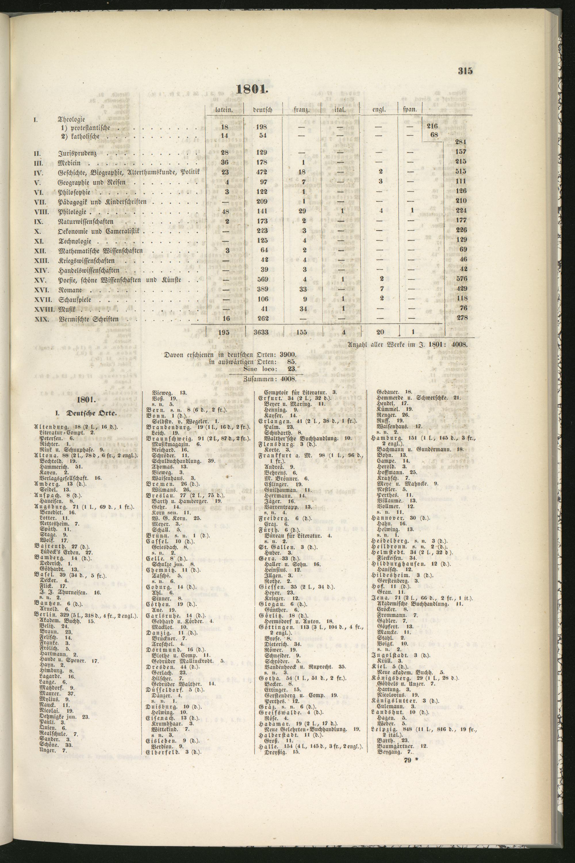 Anzahl aller Werke im I. 1801: 4008.