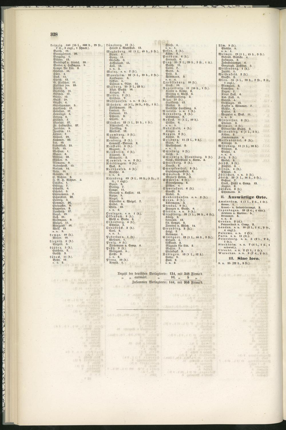 Anzahl der deutschen Vcrlagsorte: 134, mit 348 Firma's„ „ auswärt. „ 10, „ 5 „