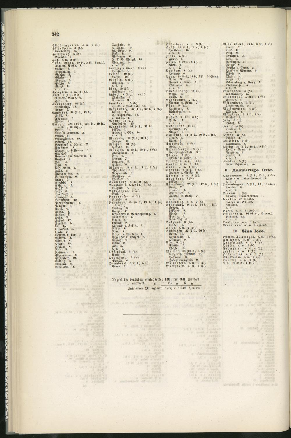 Anzahl der deutschen Verlagsorte: 14l>, mit 34l Firma's„ „ auswärt. „ 8, „ 6 „