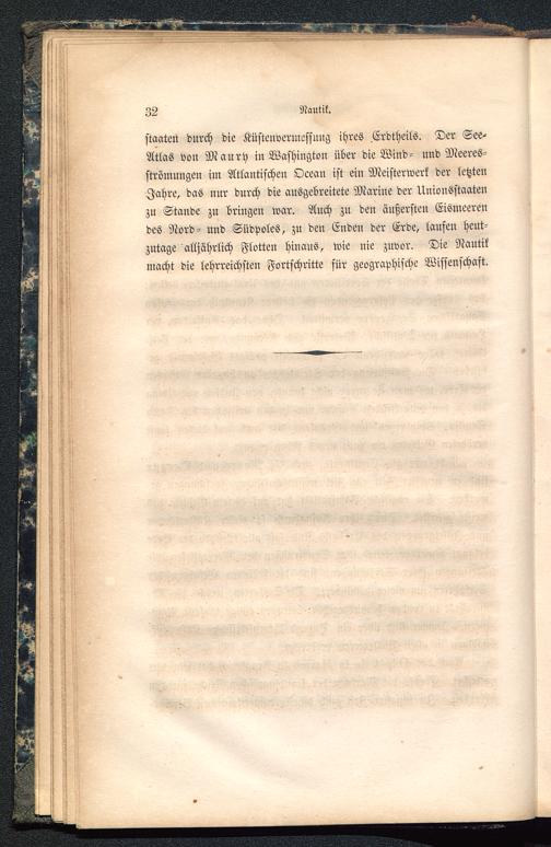 staaten durch die Küstenvermessung ihres Erdtheils. Der See^Atlas von Maury in Washington über die Wind- und Meeres-strömungen im Atlantischen Ocean ist ein Meisterwerk der letztenJahre, das nur durch die ausgebreitete Marine der Unionsstaatenzu Stande zu bringen war. Auch zu den äußersten Eismeerendes Nord- und Südpoles, zu den Enden der Erde, laufen heut-zutage alljährlich Flotten hinaus, wie nie zuvor. Die Nautikmacht die lehrreichsten Fortschritte für geographische Wissenschaft.