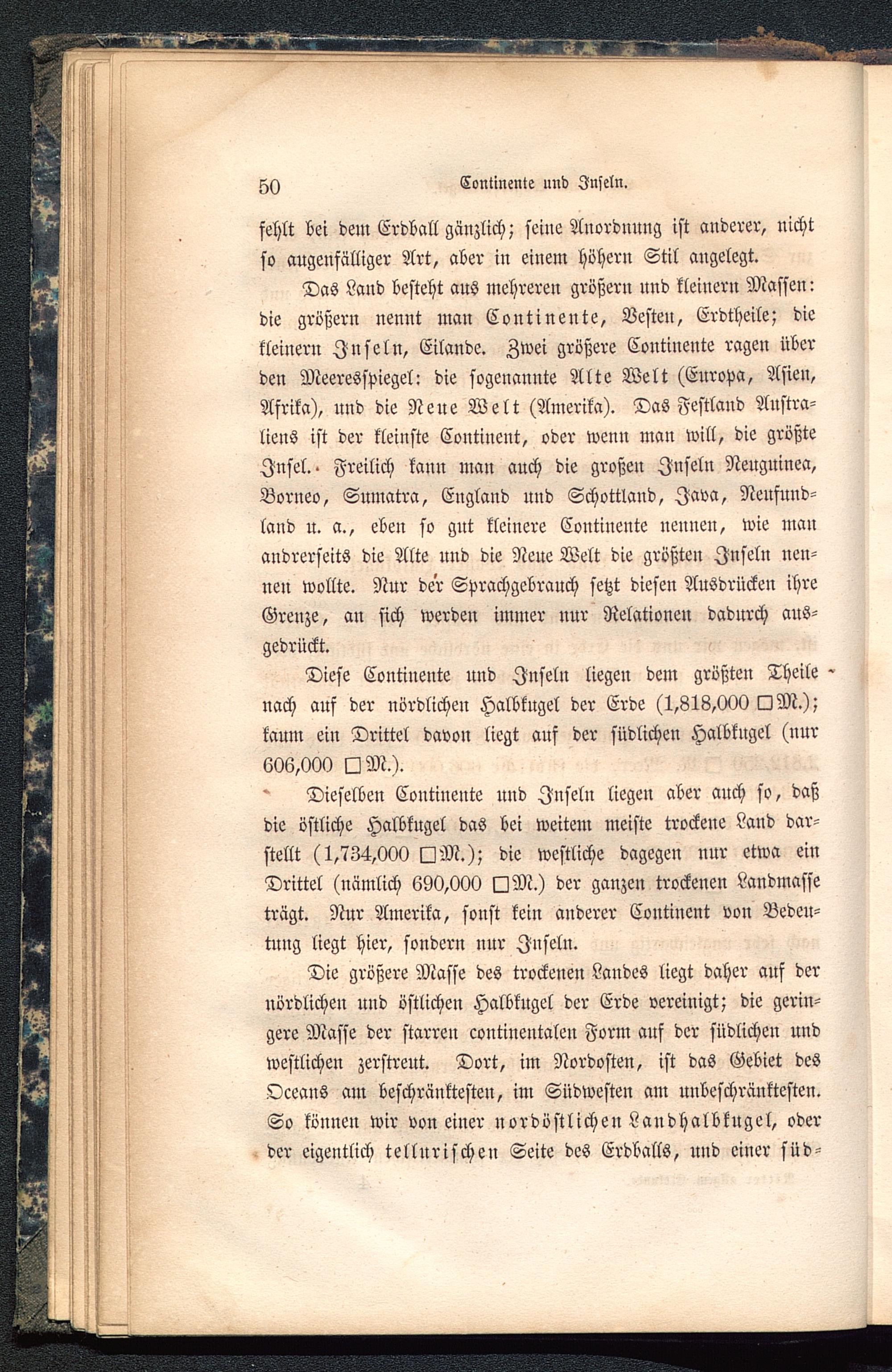 Diese Continente und Inseln liegen dem größten Theilenach auf der nördlichen Halbkugel der Erde (1,818,000 lü M);kaum ein Drittel davon liegt auf der südlichen Halbkugel (nur606,000 IHM).