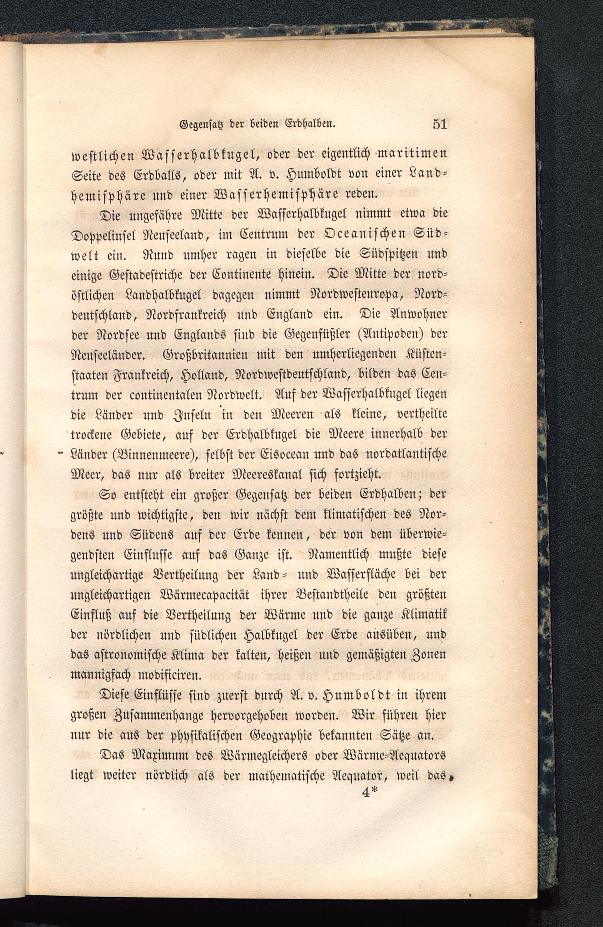 westlichen Wasserhalbkugel, oder der eigentlich maritimenSeite des Erdballs, oder mit A. v. Humboldt von einer Land-hemisphäre und einer Wasserhemisphäre reden.
