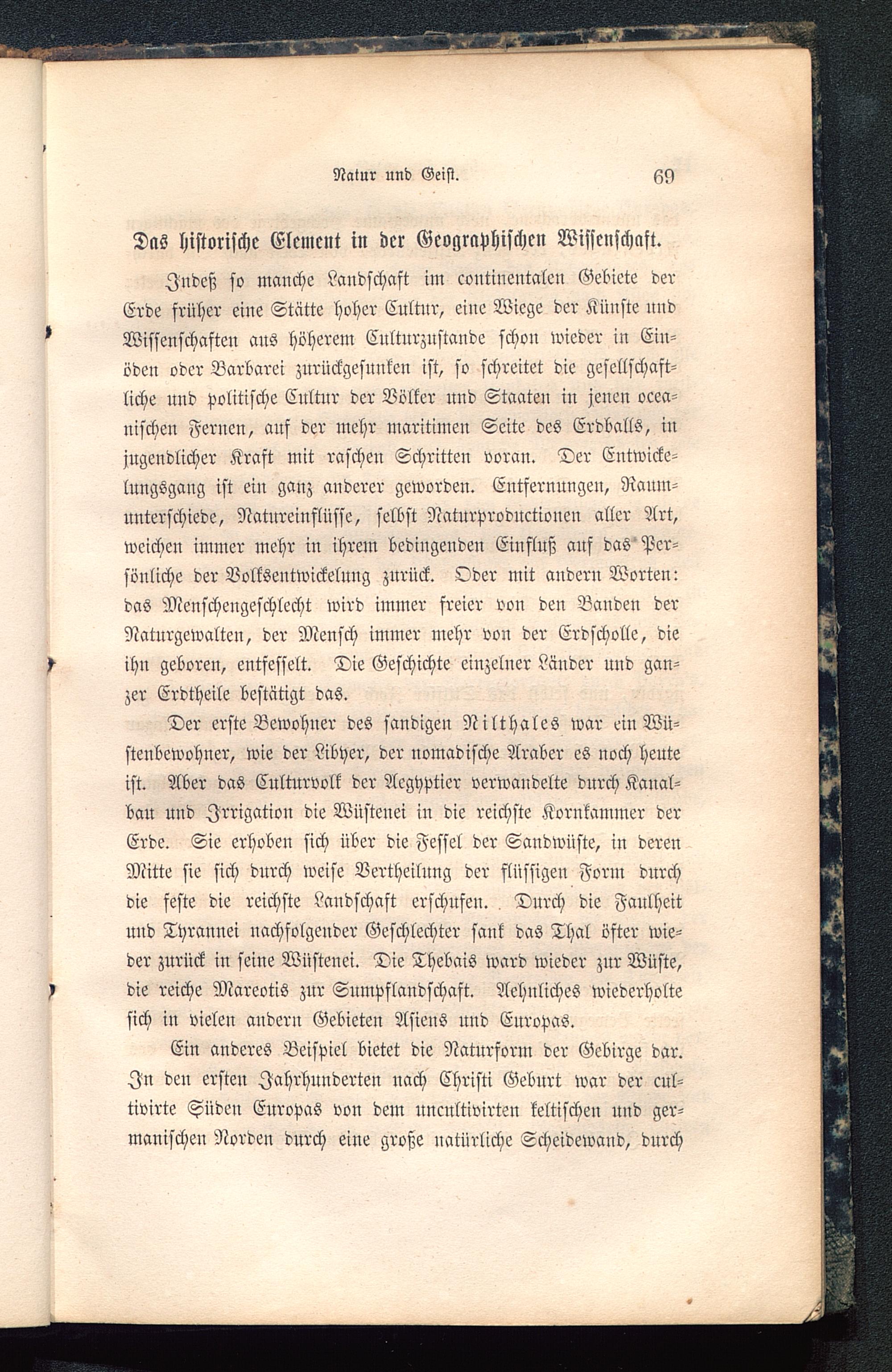 Ein anderes Beispiel bietet die Naturform der Gebirge dar.In den ersten Jahrhunderten nach Christi Geburt war der cul-tivirte Süden Europas von dem uncnltivirten keltischen und ger-manischen Norden durch eine große natürliche Scheidewand, durch