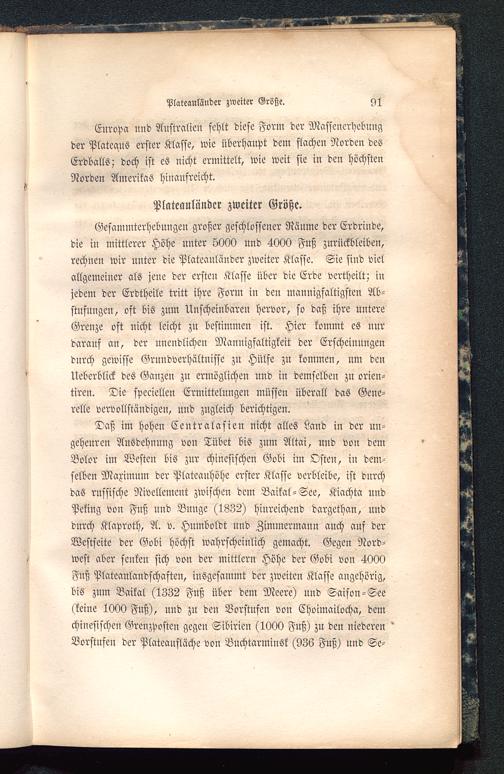 Europa und Australien fehlt diese Form der Massenerhebungder Plateaus erster Klasse, wie überhaupt dem flachen Norden desErdballs; doch ist es nicht ermittelt, wie weit sie in den höchstenNorden Amerikas hinanfreicht.