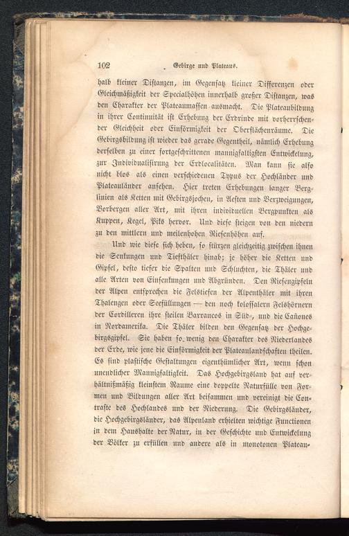 Und wie diese sich heben, so stürzen gleichzeitig zwischen ihnendie Senkungen und Tiefthälcr hinab; je höher die Ketten undGipfel, desto tiefer die Spalten und Schluchten, die Thäler undalle Arten von Einsenkungen und Abgründen. Den Ricsengipfelnder Alpen entsprechen die Felstiesen der Alpcnthäler mit ihrenThalengen oder Seefüllnngen — den noch kolossaler«! Felshörnernder Cordilleren ihre steilen Barrancos in Süd-, und die Canonesin Nordamerika . Die Thäler bilden den Gegensatz der Hochge-birgsgipfel. Sie haben so. wenig den Charakter des Niederlandcsder Erde, wie jene die Einförmigkeit der Plateanlandschaften theilen.Es sind plastische Gestaltungen eigenthümlicher Art, wenn schonunendlicher Mannigfaltigkeit. Das Hochgebirgslaud hat auf ver-hältnißmäßig kleinstem Raume eine doppelte Naturfüllc von For-men und Bildungen aller Art beisammen und vereinigt die Con-traste des Hochlandes und der Niederung. Die Gebirgsläuder,die Hochgebirgsländer, das Alpenland erhielten wichtige Functionenin dem Haushalte der Natur, in der Geschichte und Entwickelungder Völker zu erfüllen und andere als in monotonen Plateau-