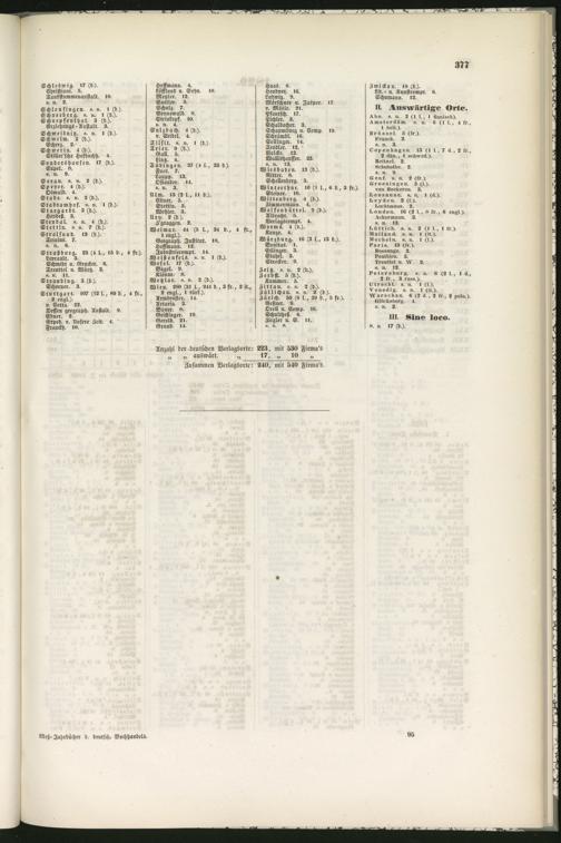 Anzahl der deutschen Verlagsorte: 223, mit 530 Firma's„ „ auswärt. „ 17, „ 10 „