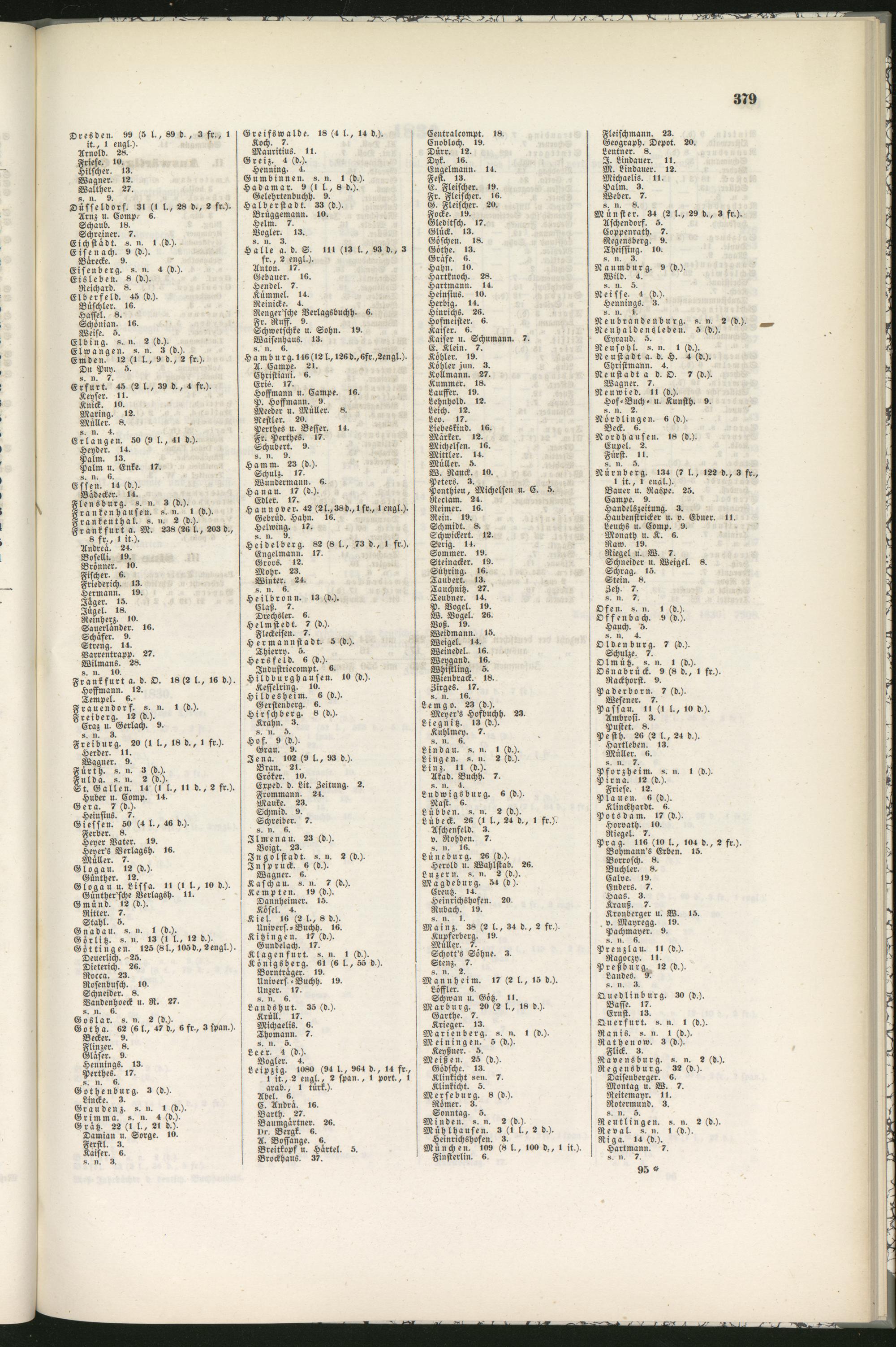 Erlangen . 50 (» l., 41 d.).Heyder. 14.Palm. 13.Palm u. Enke. 17.