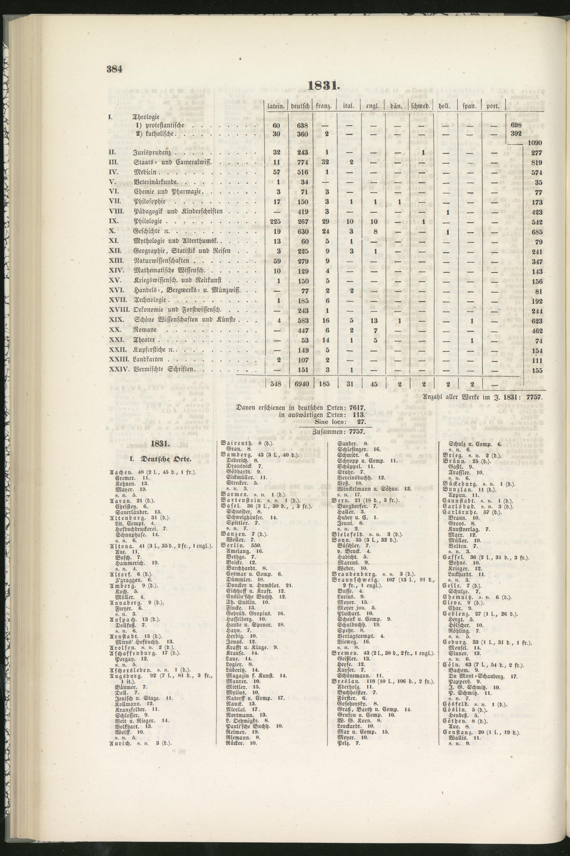 Anzahl aller Werke im I. 1831: 7757.