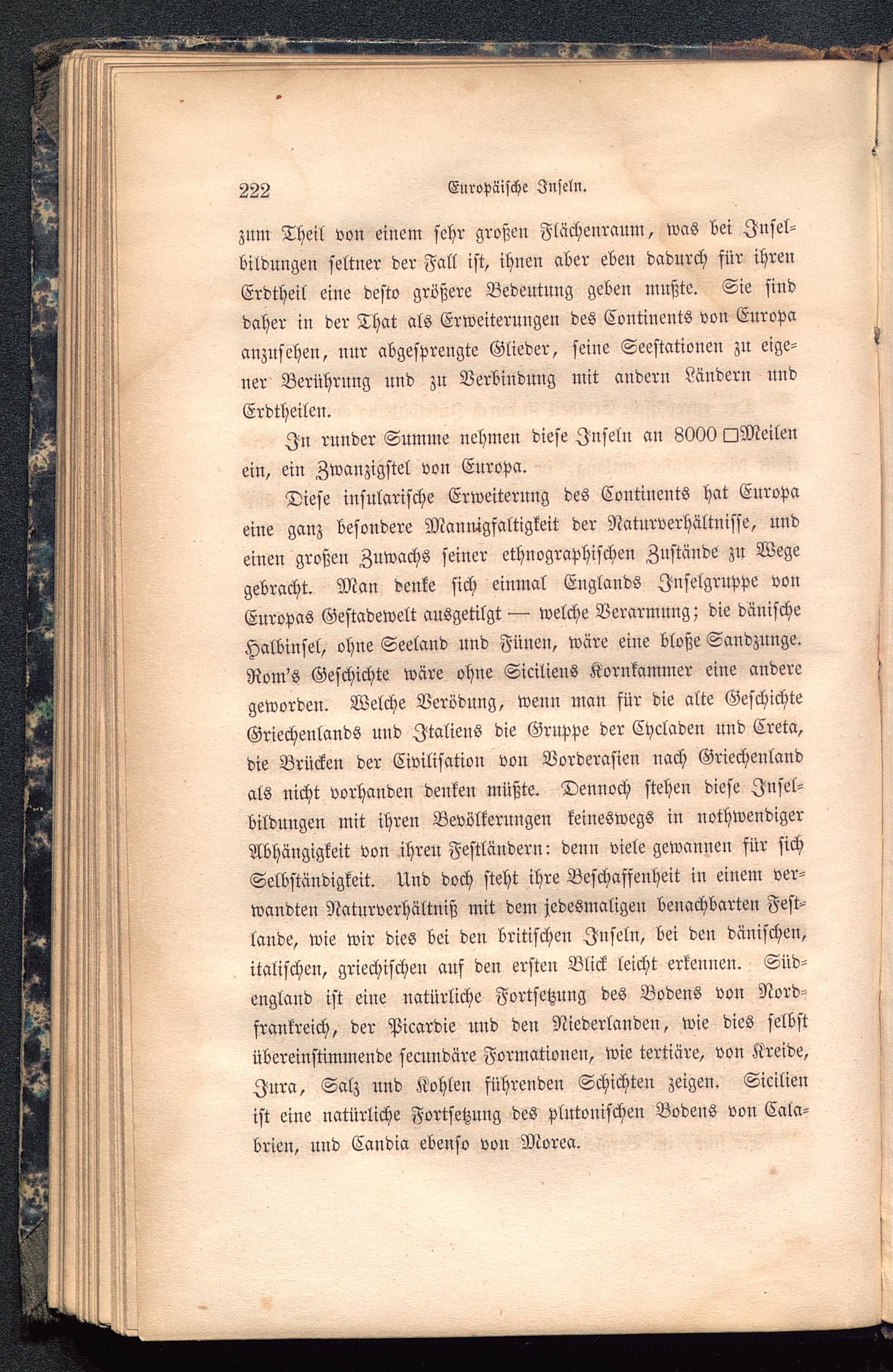 zum Theil von einem sehr großen Flächenraum, was bei Insel-bildungen seltner der Fall ist, ihnen aber eben dadurch für ihrenErdtheil eine desto größere Bedeutung geben mußte. Sie sinddaher in der That als Erweiterungen des Continents von Europa anzusehen, nur abgesprengte Glieder, seine Seestationen zu eige-ner Berührung und zn Verbindung mit andern Ländern nndErdtheileu.