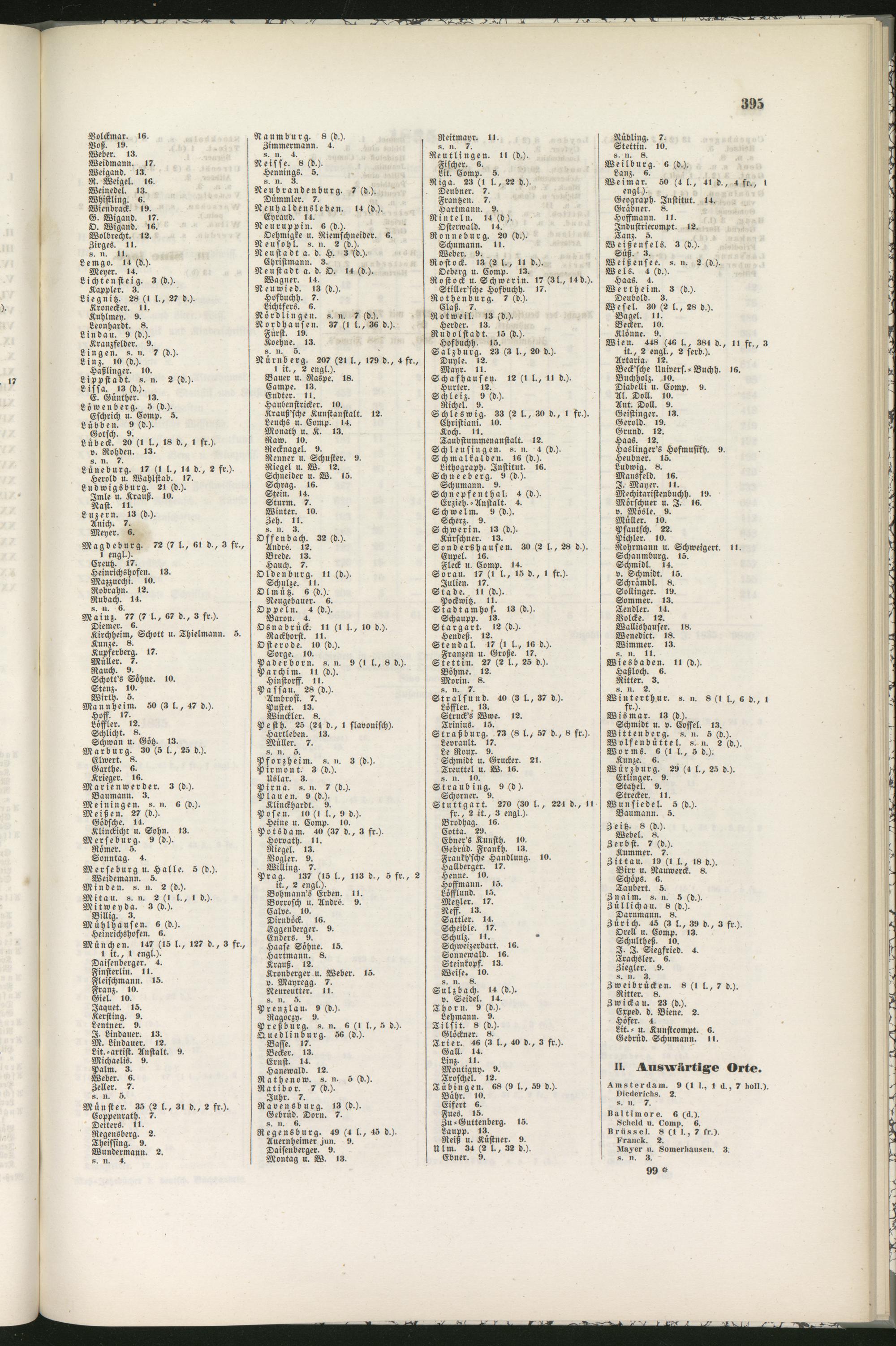 Nürnberg. 207 (21 l., 179 d., 4 fr.,I it., 2 engl.).Bauer u. Raspe. 18.Campe. 13.Endter. II.Haubenstricker. 10.Krauß'sche Kunstanstalt. 12.Leuchs u. Comp. 14.Monath u. K. 13.Raw. io.Recknagel. 9.Renner u. Schuster. 9.Riegel u. W. 12.Schneider u. W. 15.Schräg. 16.Stein. 14.Sturm. 7.Winter. 10.Zeh. II.