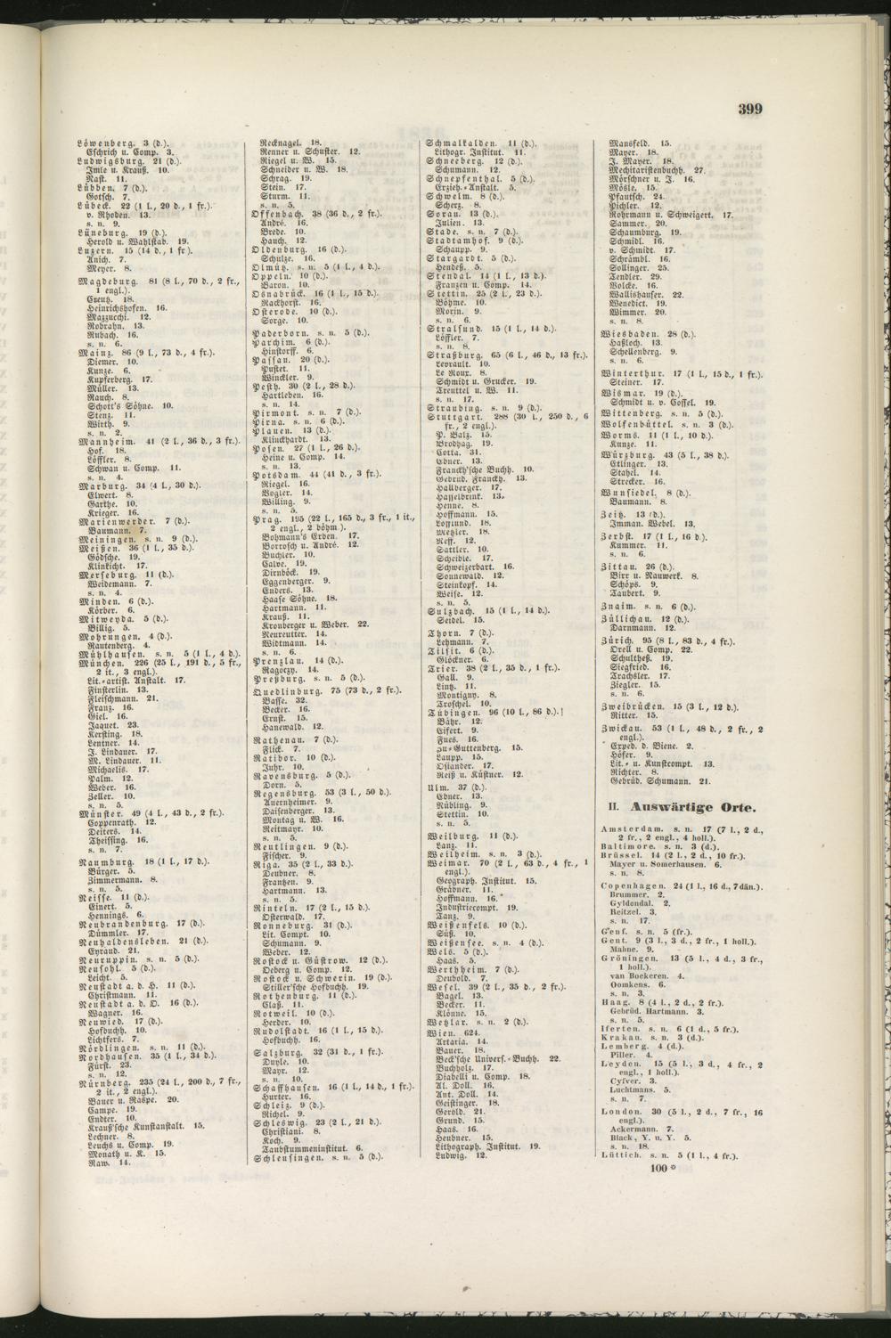 ». II. 14.Pirmont. ». ii. 7 (d.).Pirna . «. ii. 6 (d.).l Planen. 13 (d.).Klinckhardt. 13.Posen. 27 (I l., 2« d.).^ Heine u. Comp. 14.