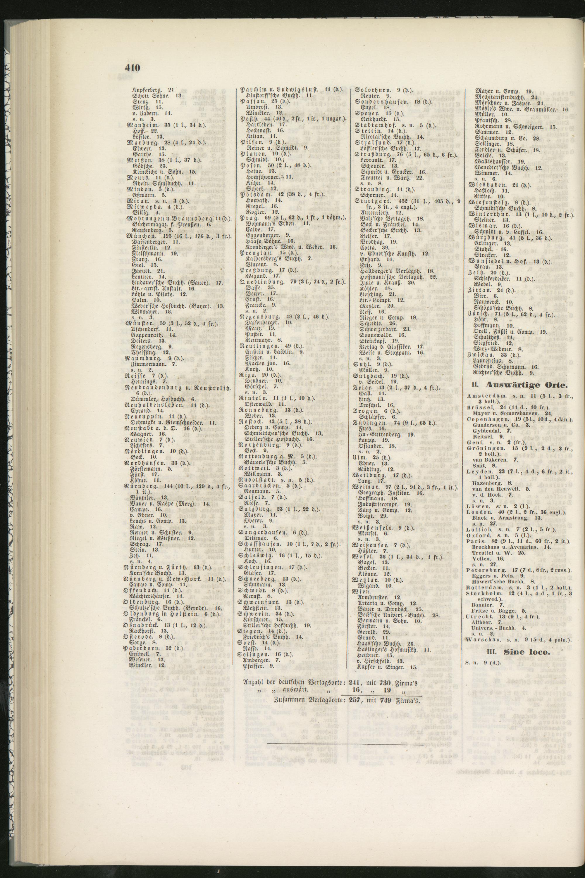 Anzahl der deutschen Vcrlagsorte: 2^1, mit 730 Firma's„ „ auswärt. „ IK, „ l» „