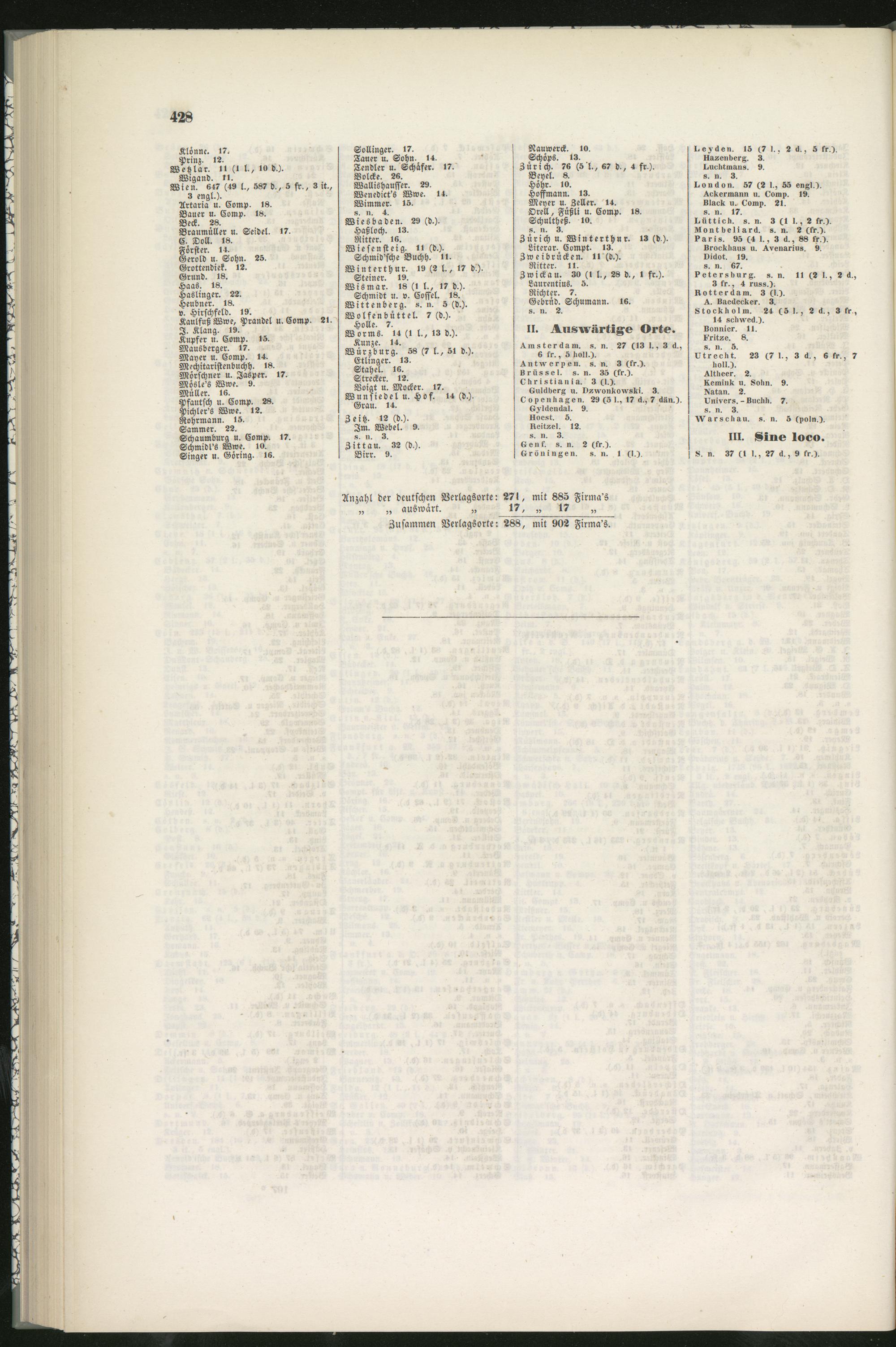 Anzahl der deutschen Verlagsorte: 27l, mit 885 Firma's„ „ auswart. „ 17, „ 17 „