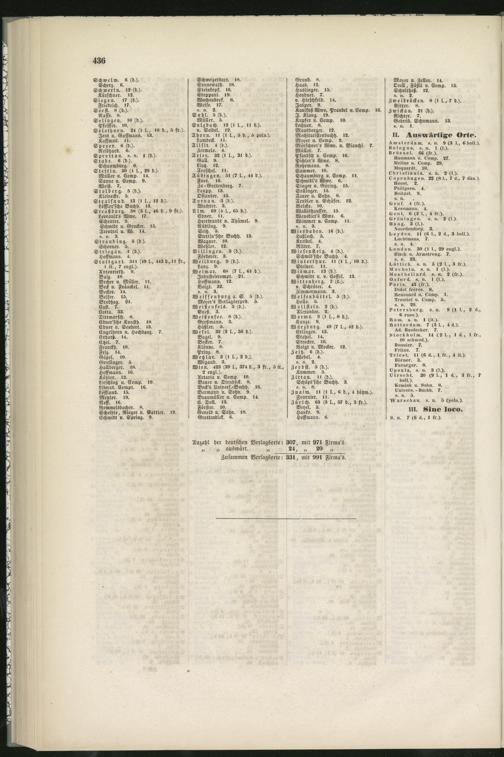Anzahl der deutschen Verlagsorte: 307, mit 97l Firma's„ „ auswärt. „ 24, „ 20 „
