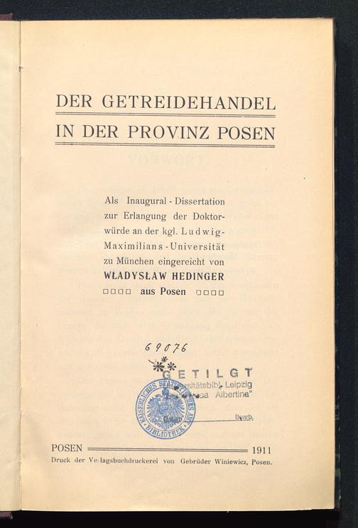 Druck der VeGagsbuchdruckerei von Gebrüder Winiewicz, Posen.