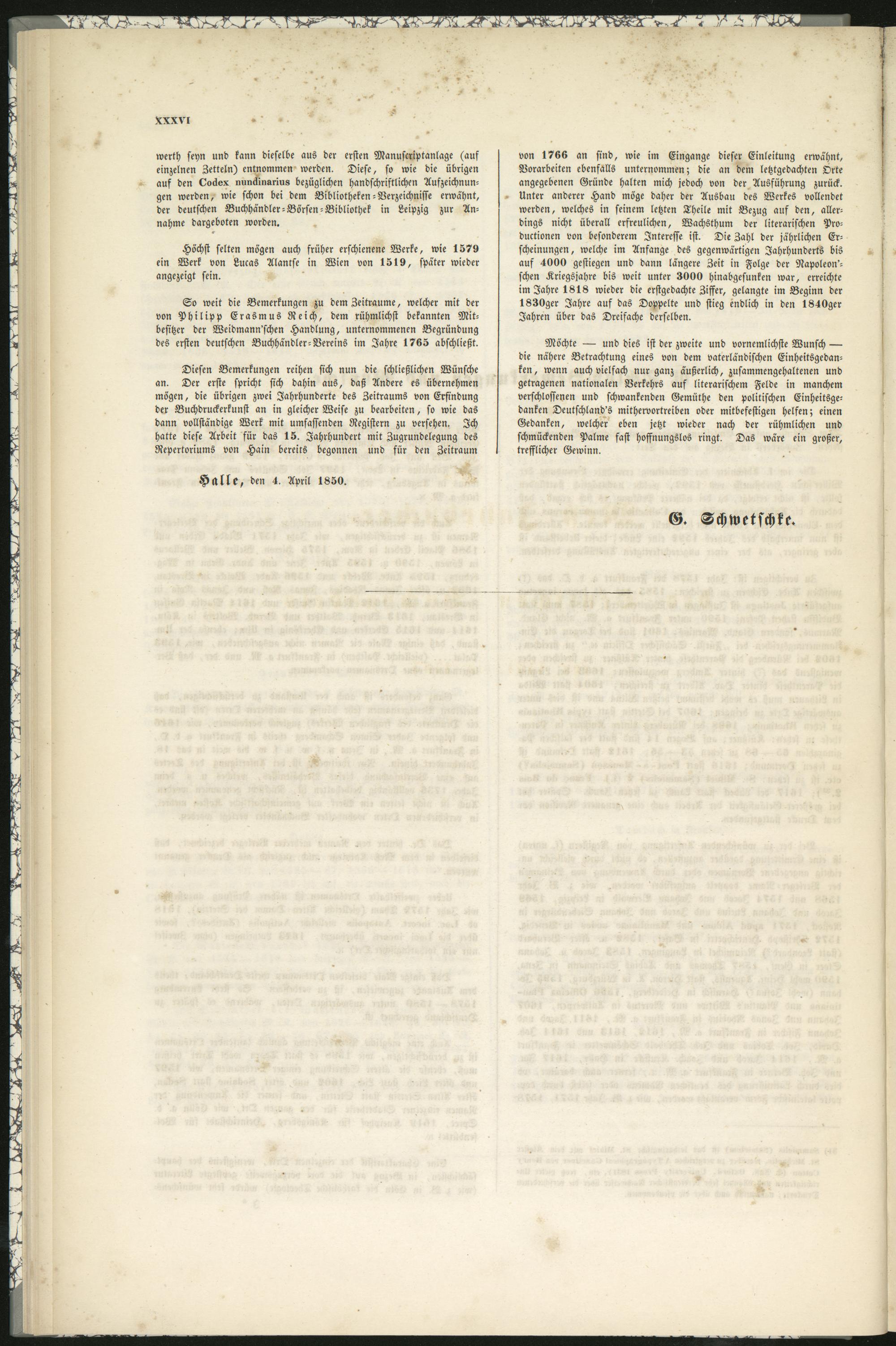 Diesen Bemerkungen reihen sich nun die schließlichen Wünschean. Der erste spricht sich dahin aus, daß Andere es übernehmenmögen, die übrigen zwei Jahrhunderte des Zeitraums von Erfindungder Buchdruckerkunst an in gleicher Weise zu bearbeiten, so wie dasdann vollständige Werk mit umfassenden Registern zu versehen. Ichhatte diese Arbeit für das 15. Jahrhundert mit Zugrundelegung desRepertoriums von Hain bereits begonnen und für den Zeitraum