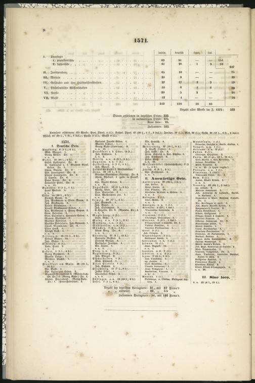 Anzahl der deutschen Berlagsorte: 31, mit 6? Firma's„ „ auswärt. „ : 23, „ 5 5 „