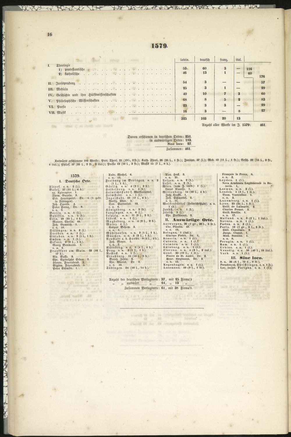 Anzahl aller Werke im I. 1579: 461.