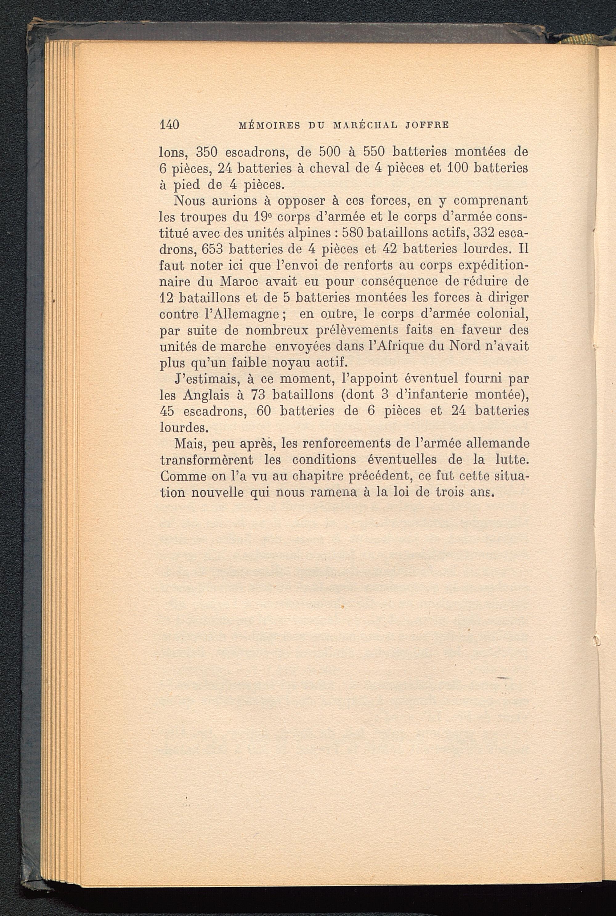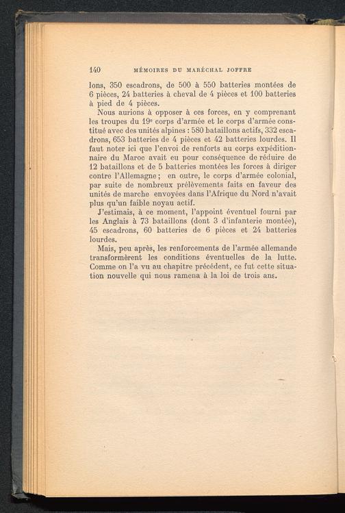 Mais, peu après, les renforcements de l’armée allemandetransformèrent les conditions éventuelles de la lutte.Comme on l’a vu au chapitre précédent, ce fut cette situa-tion nouvelle qui nous ramena à la loi de trois ans.