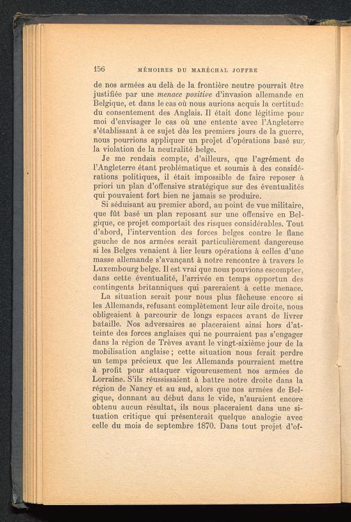 de nos armées au delà de la frontière neutre pourrait êtrejustifiée par une menace positive d’invasion allemande enBelgique, et dans le cas où nous aurions acquis la certitudedu consentement des Anglais. Il était donc légitime pourmoi d’envisager le cas où une entente avec l’Angleterre s’établissant à ce sujet dès les premiers jours de la guerre,nous pourrions appliquer un projet d’opérations basé sur,la violation de la neutralité belge.