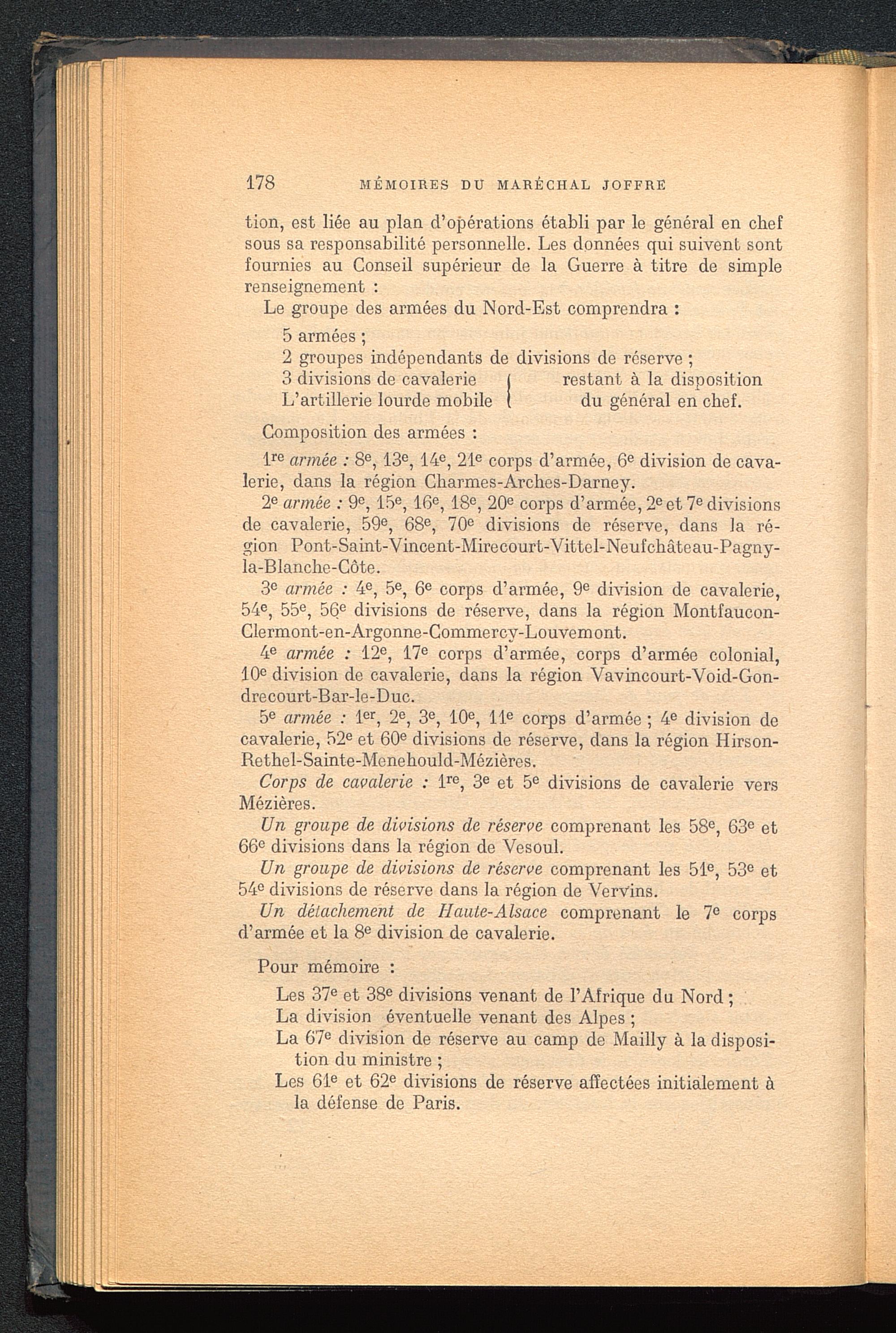 l re armée : 8 e , 13 e , 14 e , 21 e corps d’armée, 6 e division de cava-lerie, dans la région Charmes -Arches-Darney.