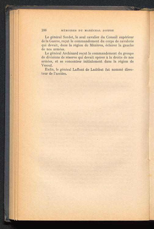 Le général Sordefc, le seul cavalier du Conseil supérieurde la Guerre, reçut le commandement du corps de cavaleriequi devait, dans la région de Mézières, éclairer la gauchede nos armées.