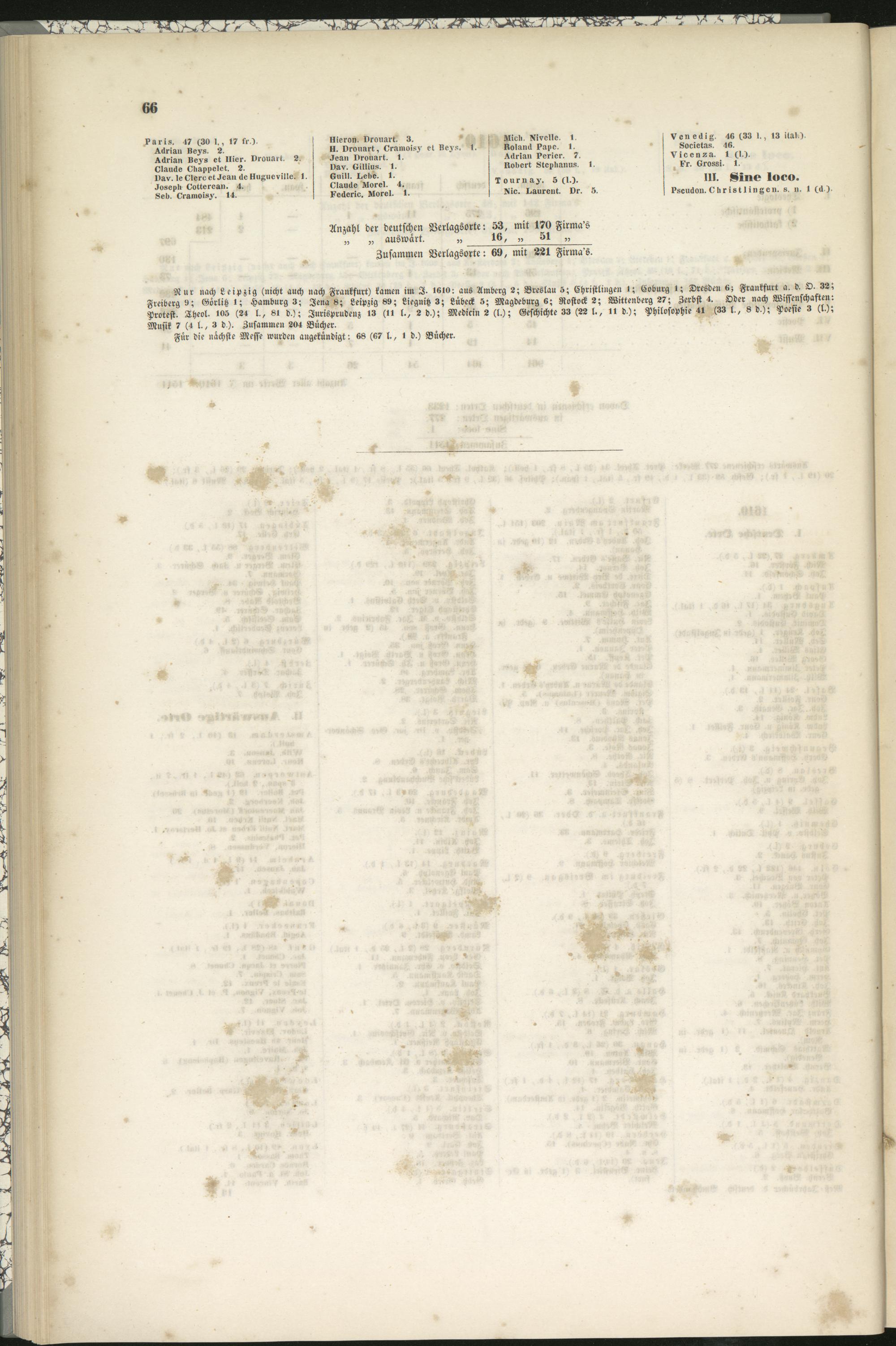 Anzahl der deutschen Verlagsorte: 53, mit 170 Firma's„ „ auswärt. „ 16, ,, 51 „