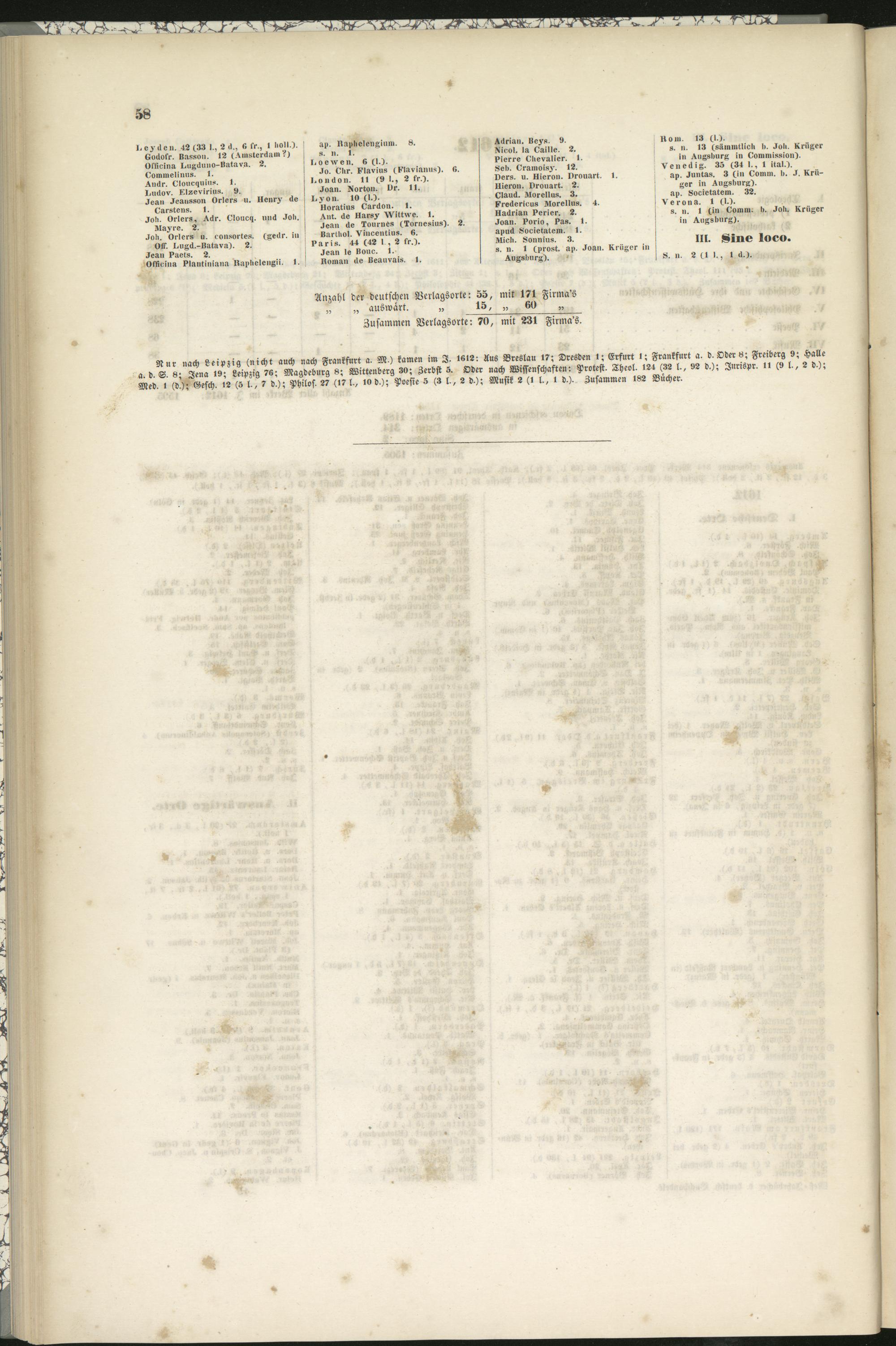 Anzahl der deutschen Aerlagsorte: 55, mit 171 Firma's„ auswärt. „ 15, „ 60 „