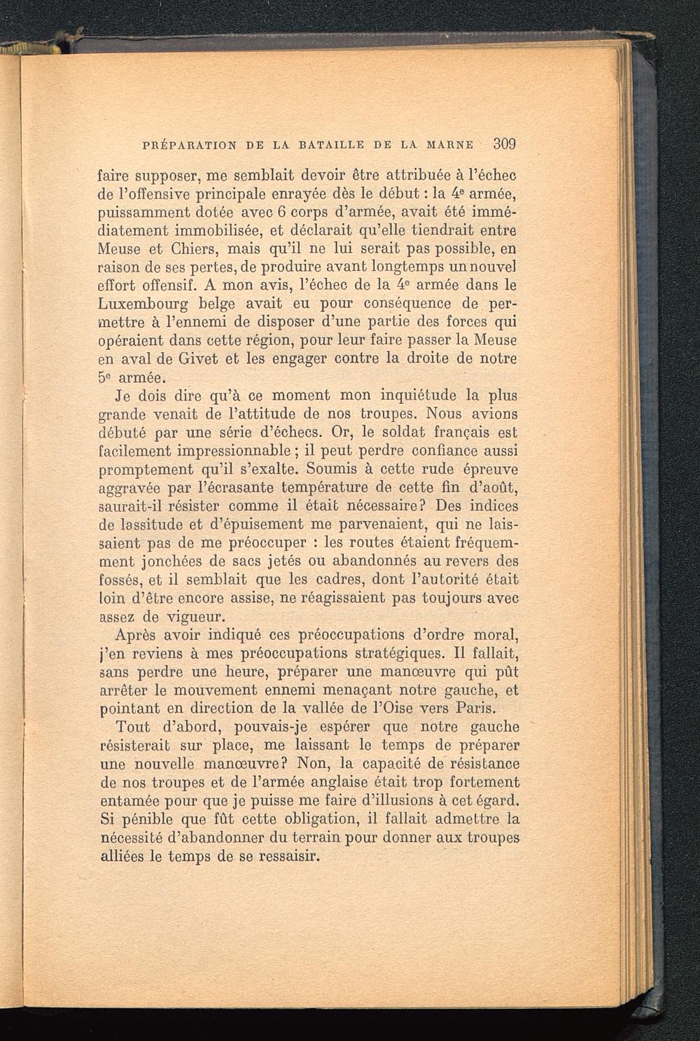 PRÉPARATION DE LA BATAILLE DE LA MARNE 309