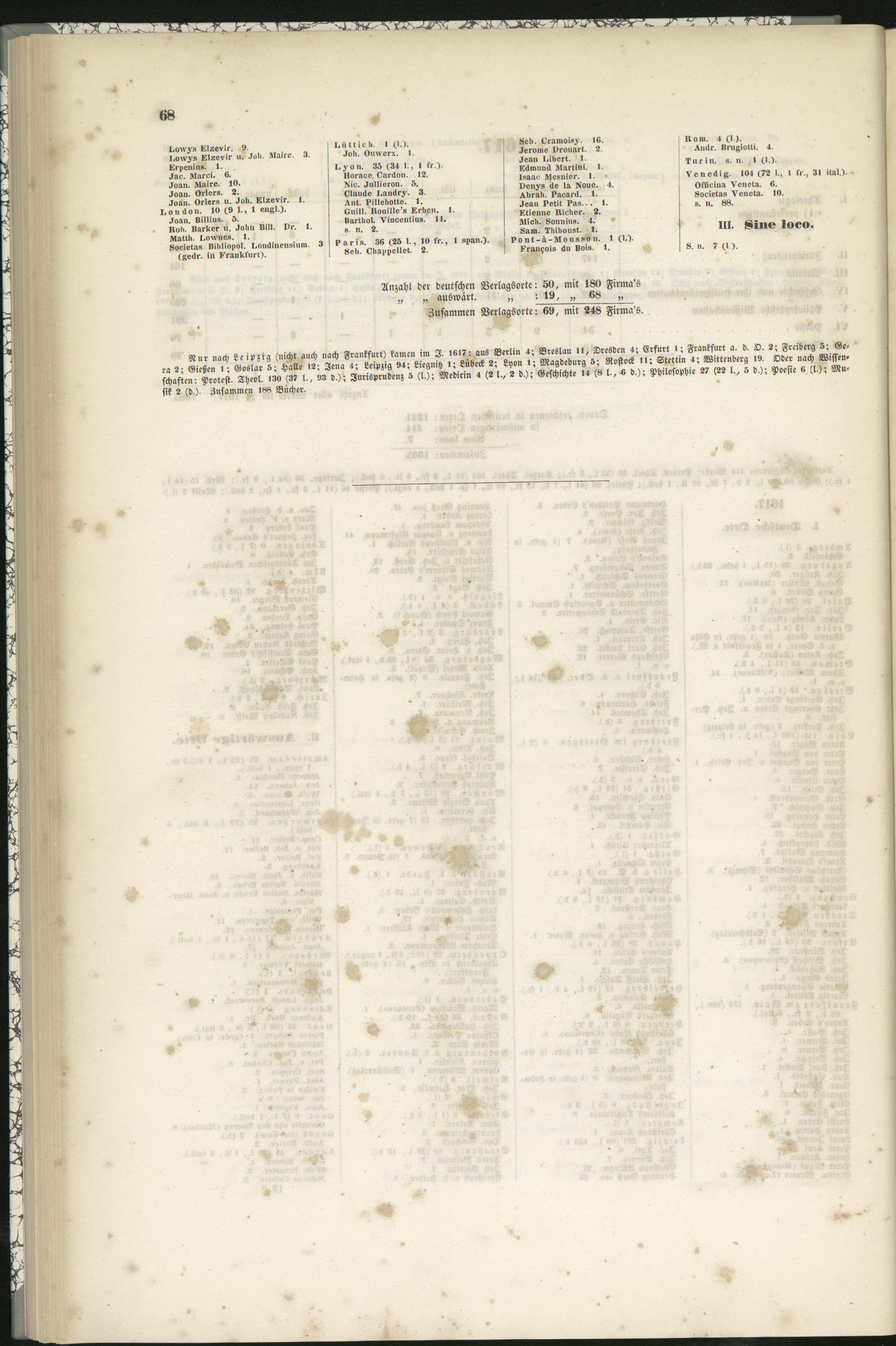 Anzahl der deutschen Verlagsorte: 50, mit 180 Firma's„ „ auswärt. „ : 19, „ 68 „