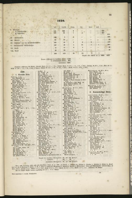 Anzahl der deutschen Verlagsorte: 48, mit 151 Firma's„ „ auswärt. „ 10, „ 31 „