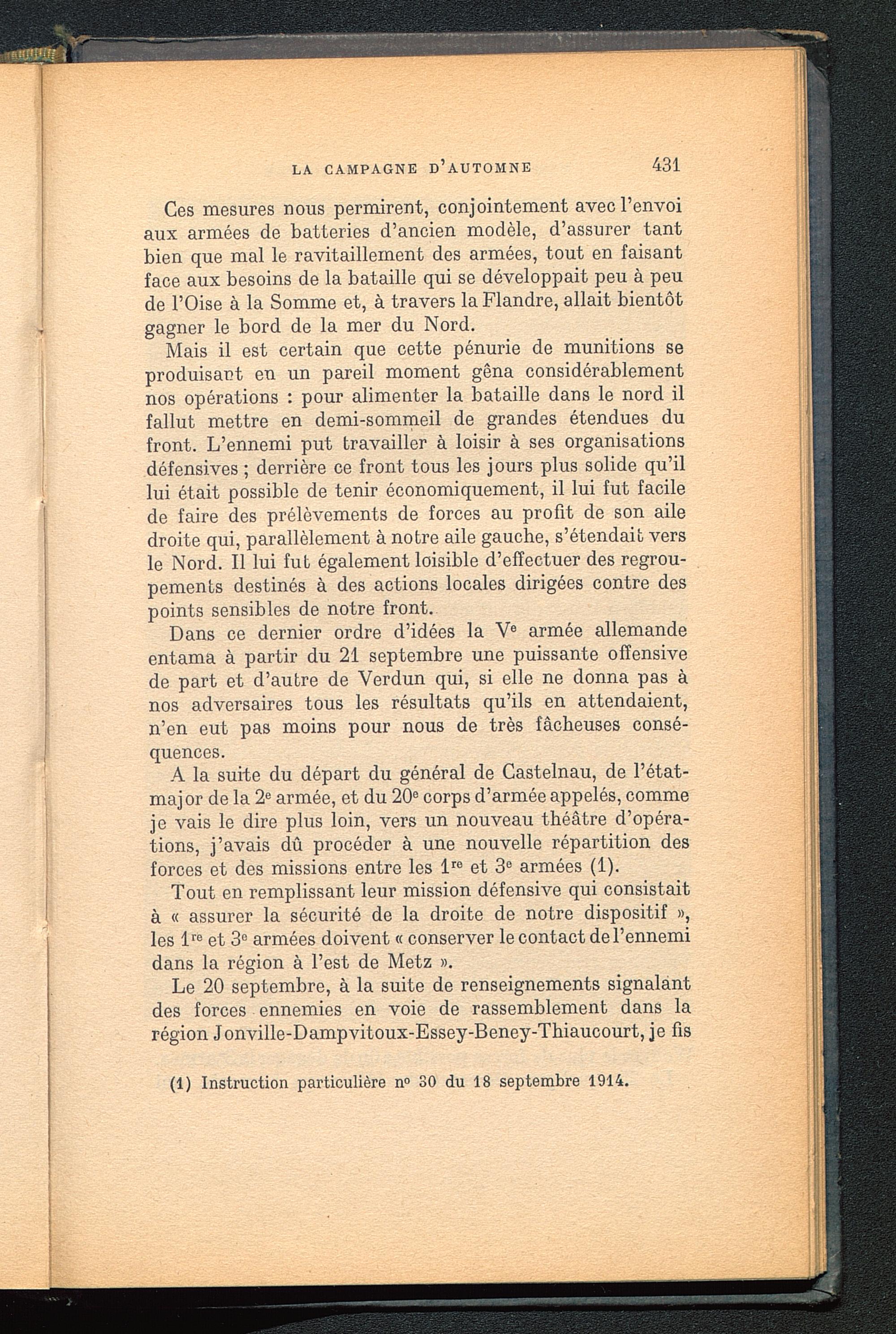 (1) Instruction particulière n° 30 du 18 septembre 1914.