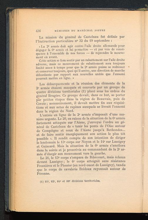Cette action se fera sentir par un rabattement sur l’aile droiteadverse, mais ce mouvement do rabattement sera toujourslimité assez à temps pour que la 2 e armée puisse se redresseret conserver toujours, quoi qu’il arrive, une direction de marchedébordante par rapport aux nouvelles unités que l’ennemipourrait mettre en ligne. »