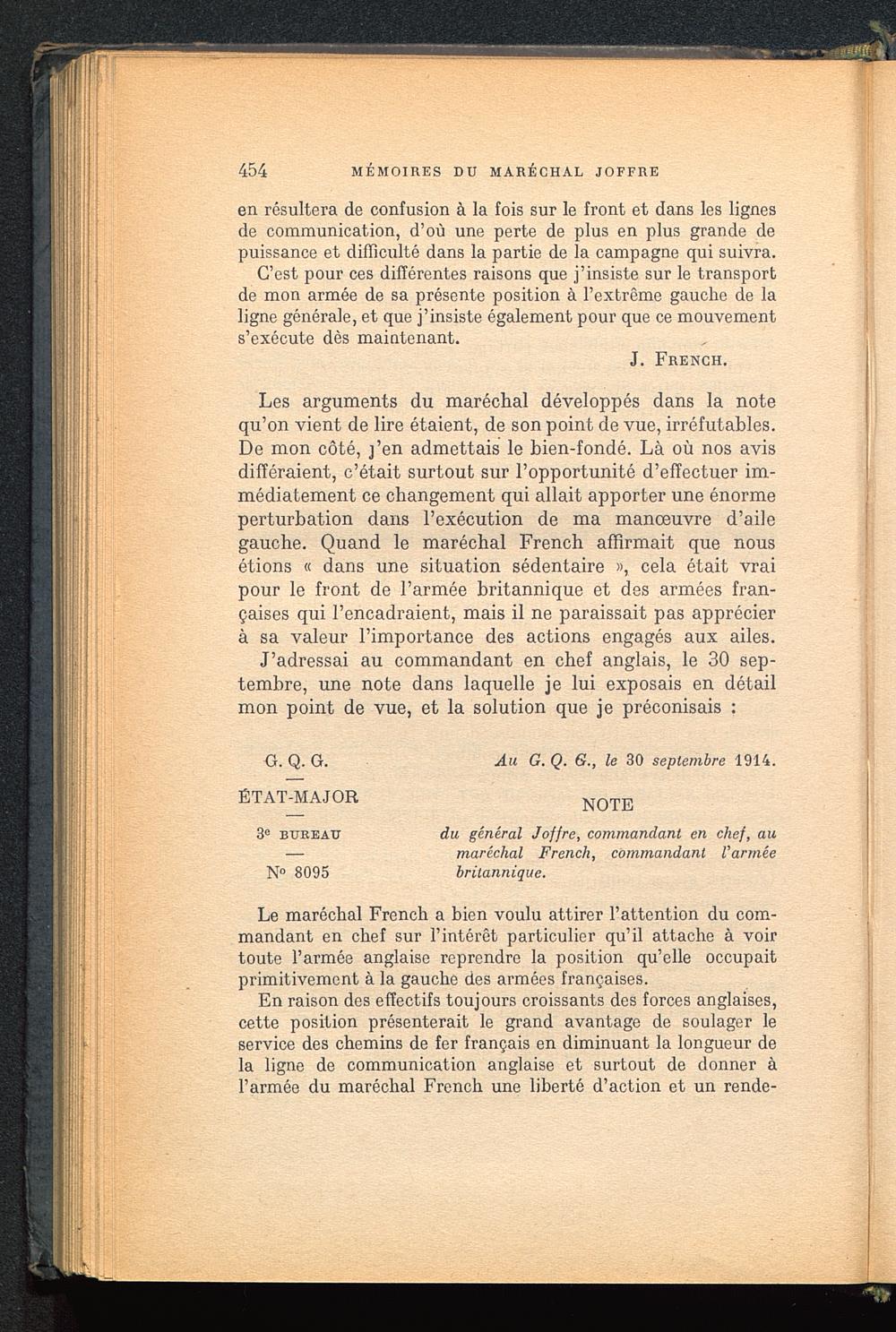 Le maréchal French a bien voulu attirer l’attention du com-mandant en chef sur l’intérêt particulier qu’il attache à voirtoute l’armée anglaise reprendre la position qu’elle occupaitprimitivement à la gauche des armées françaises.