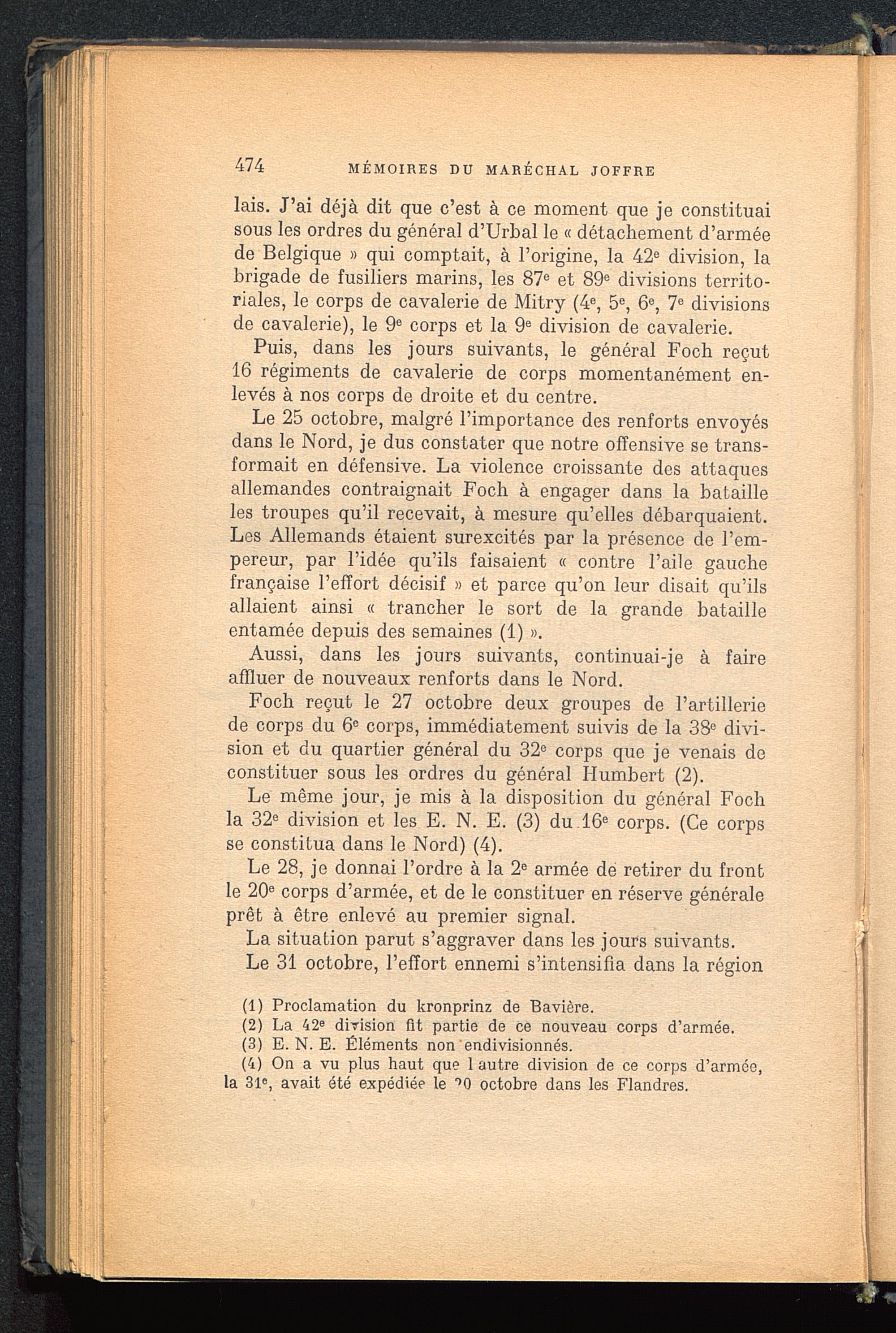 Le même jour, je mis à la disposition du général Fochla 32 e division et les E. N. E. (3) du 16 e corps. (Ce corpsse constitua dans le Nord) (4).