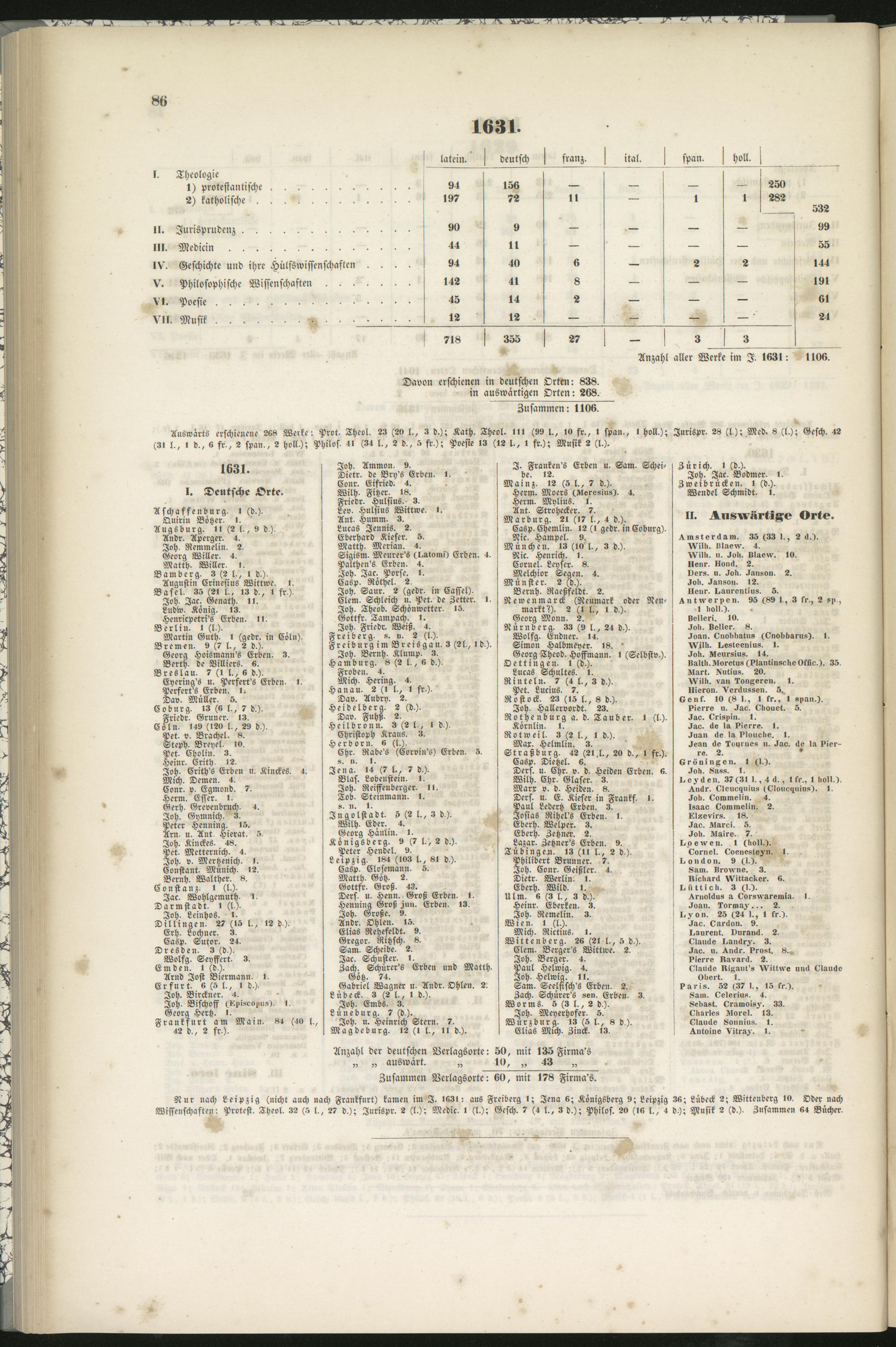 Davon erschienen in deutschen Orten: 838.