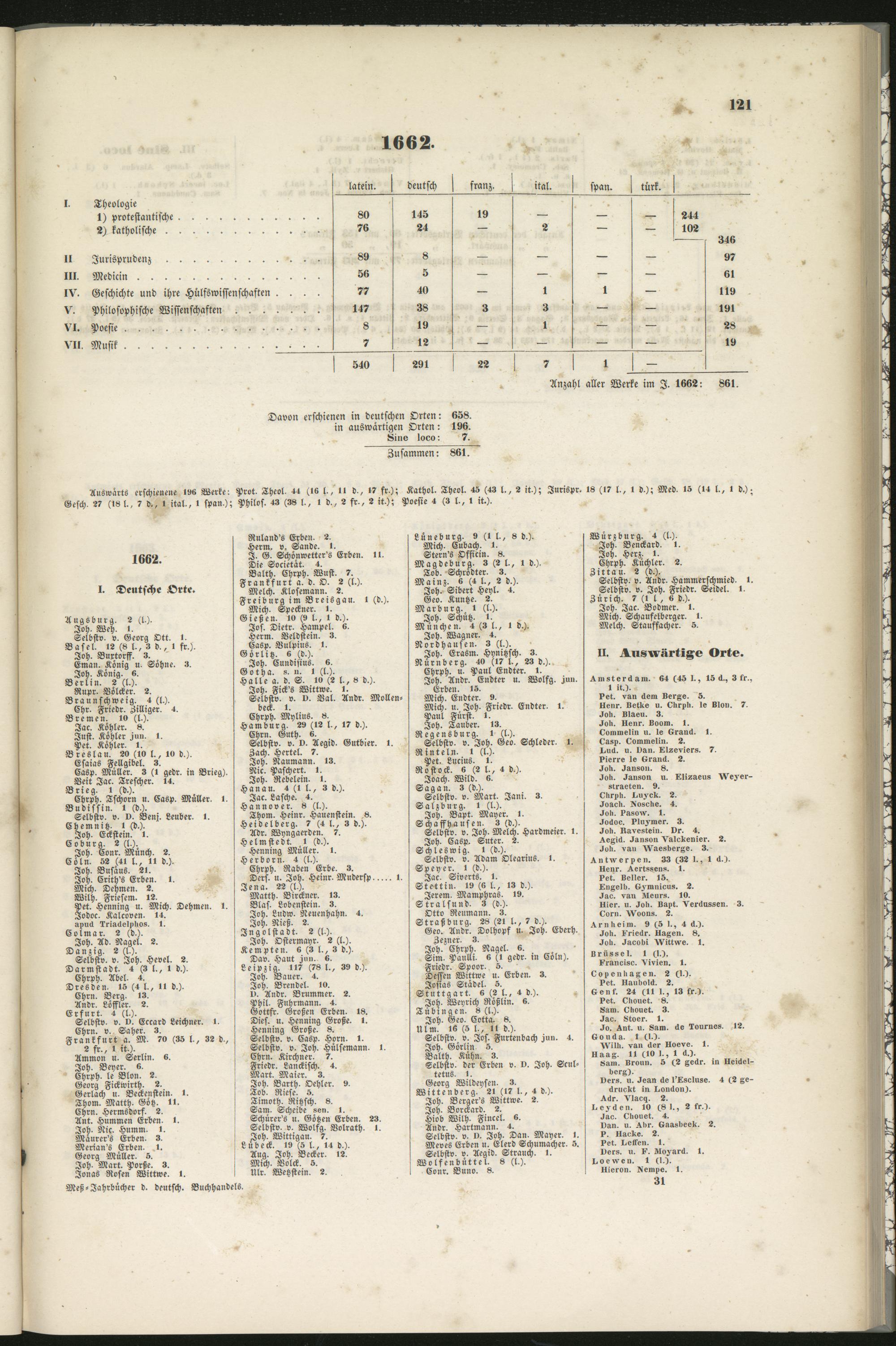 Auswärts erschienene li>6 Werke: Prot, Theol, 44 (ls l-, il d,, 17 fr.); Kathol. Theol. 45 (43 l., S it.); Jurispr. 18 (l7 l., i d.); Med. 15 (14 l., I d.);Gesch- 37 (l8 l., 7 d., I ital., I span.); Philos. 43 (38 l., i d., 2 fr., S it.); Poesie 4 (3 l-, i it.).