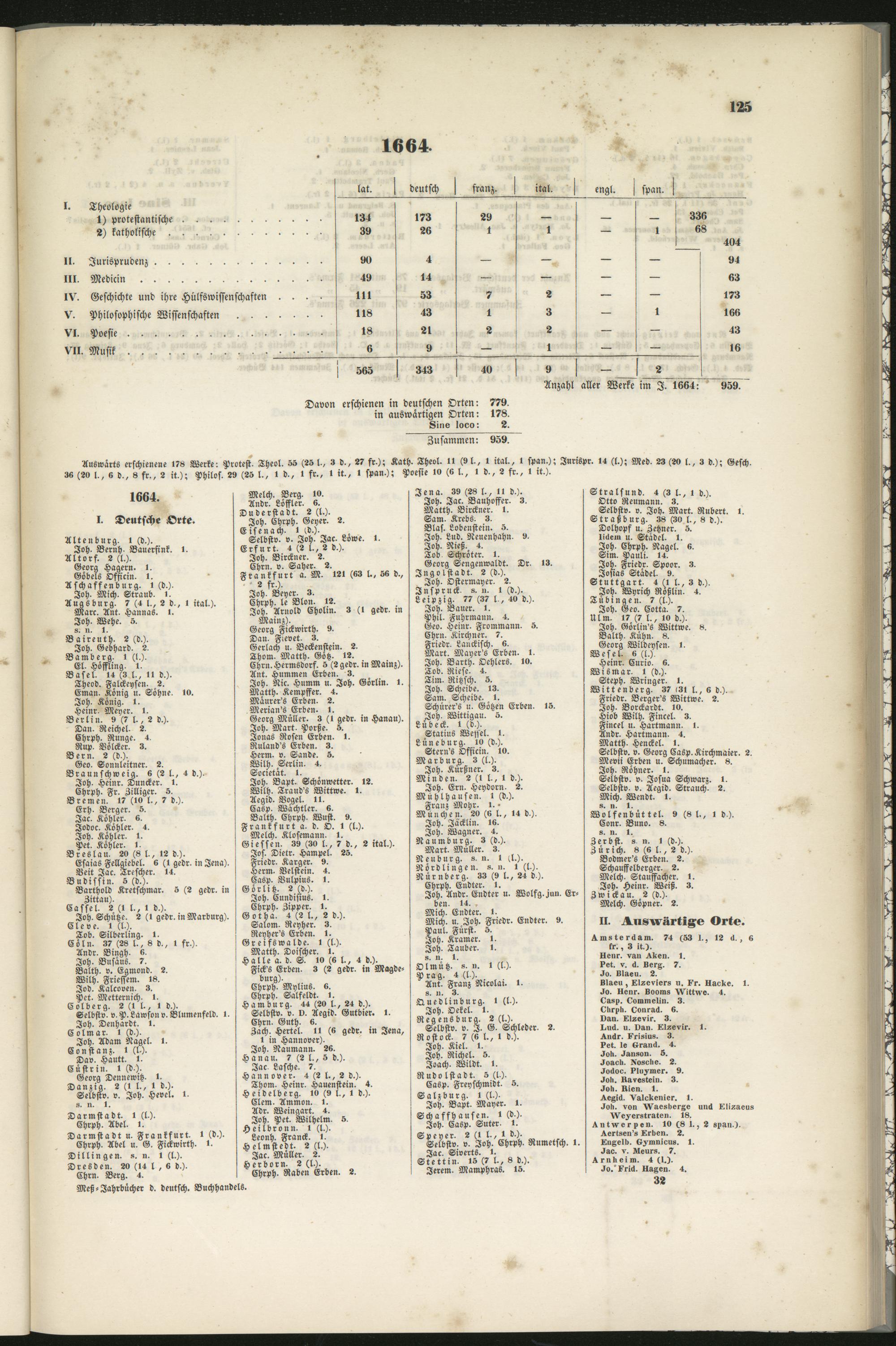 Anzahl aller Werke im I. 1664: 959.