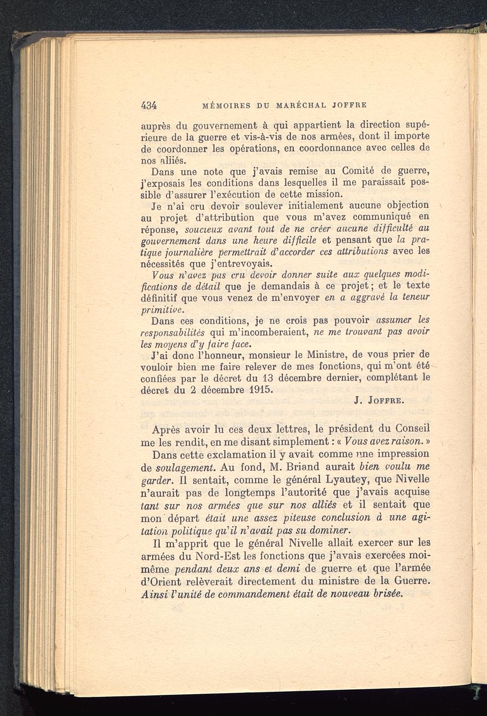 434 MÉMOIRES DU MARÉCHAL JOFFRE