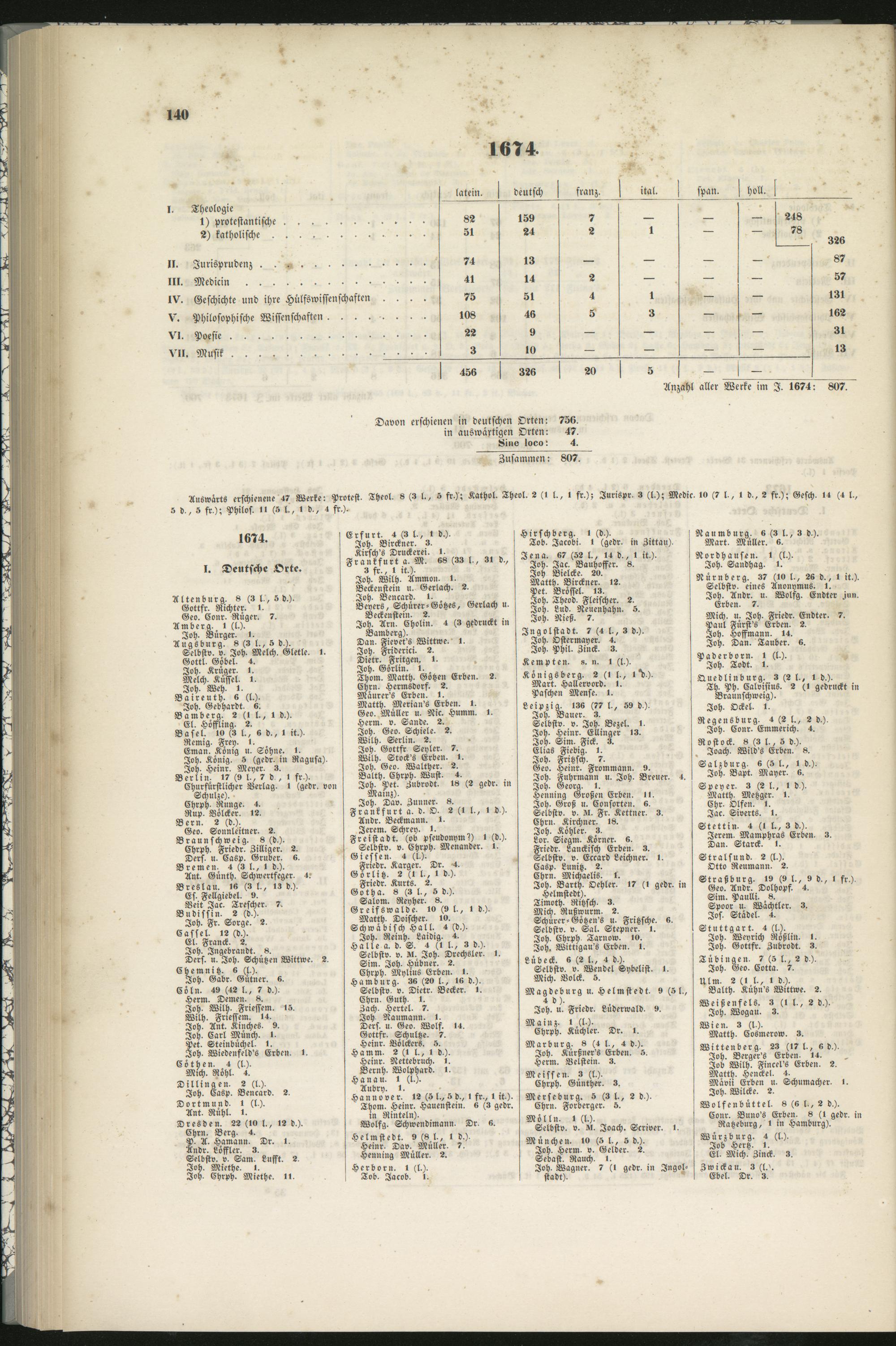 Anzahl aller Werke im I. 1674 : 807.