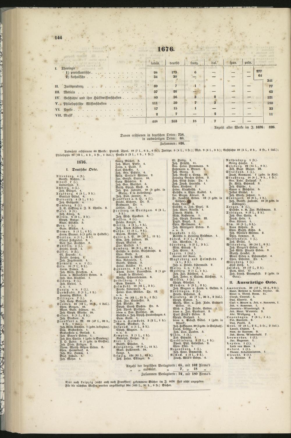 Anzahl aller Werke im I. 1676 : 826.
