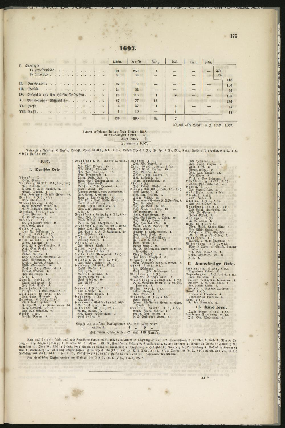 Anzahl der deutschen Verlagsorte: 48, mit 140 Firma's„ „ auswärt. „ 4, „ 9 „