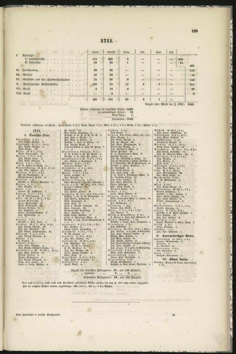 Anzahl der deutschen Verlagsorte: 60, mit 146 Firma's,„ „ auswärt. „ 3, „ 5 „