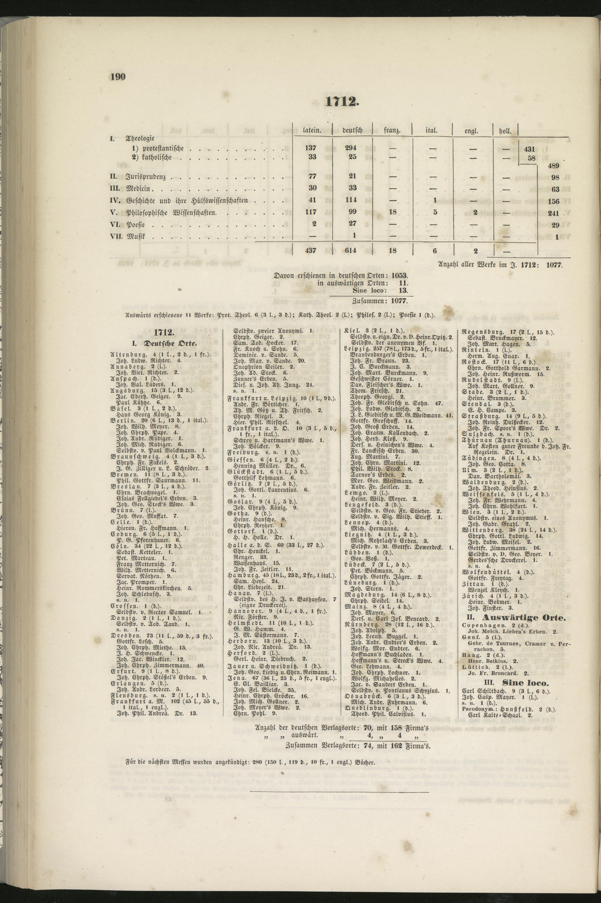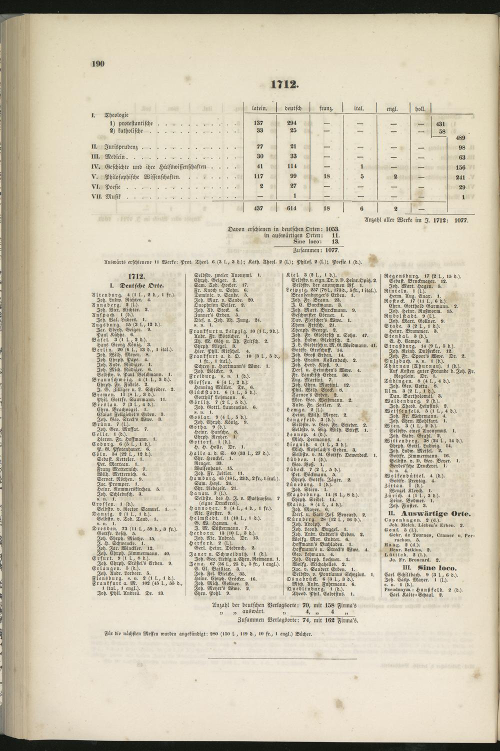 Anzahl der deutschen Verlagsorte: 70, mit 158 Firma's„ „ auswärt. „ 4, „ 4 „