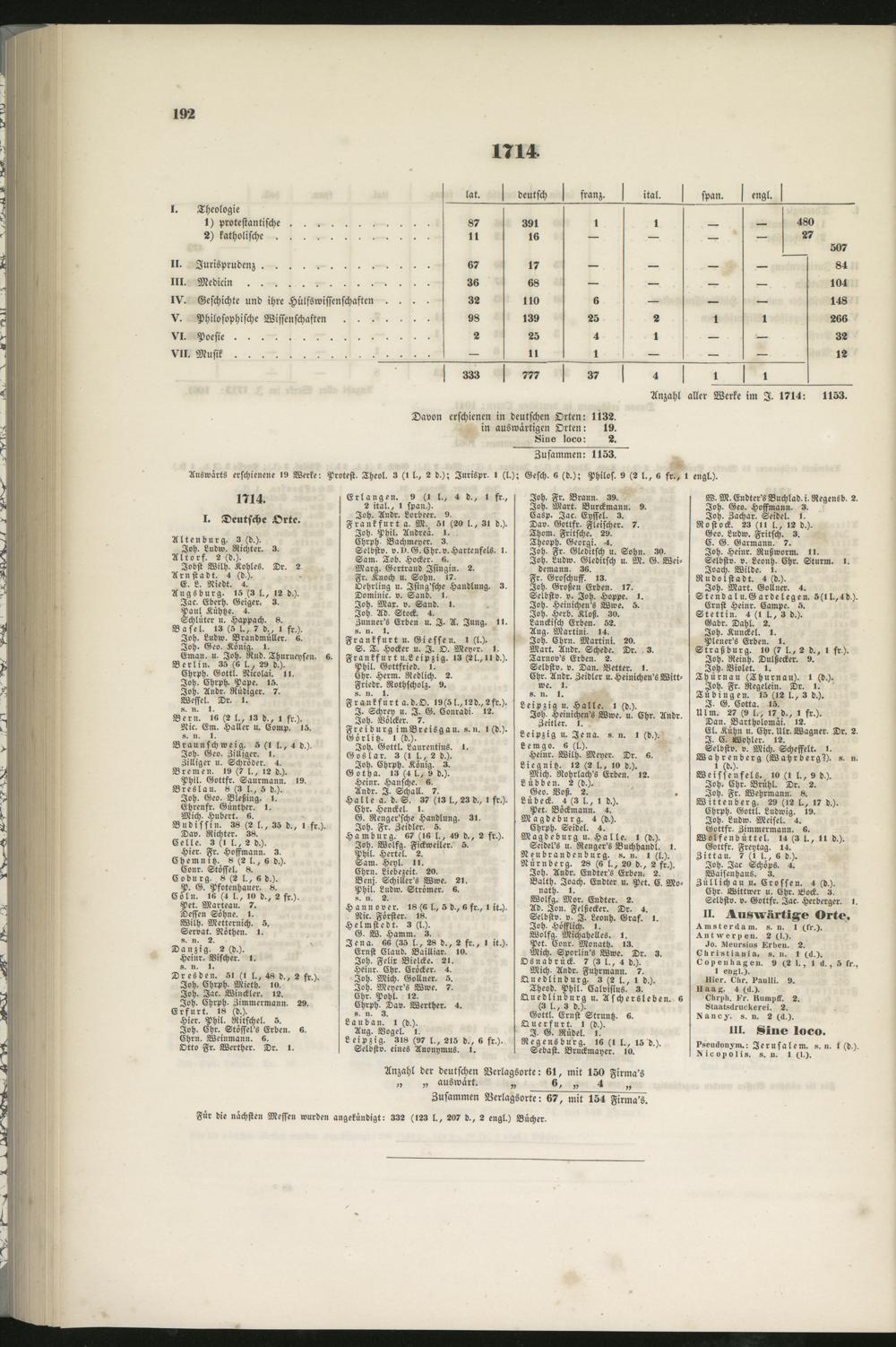 Anzahl der deutschen Verlagsorte: 61, mit 150 Firma's