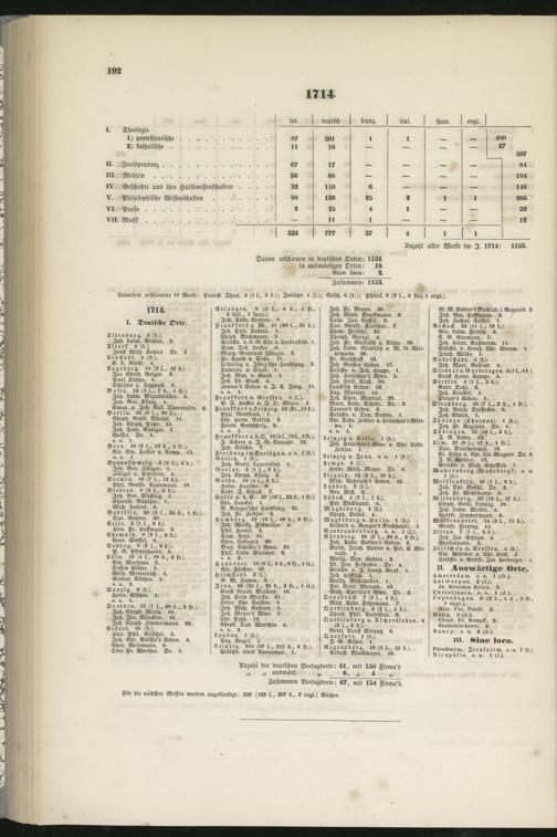 Zusammen Verlagsorte: 67, mit 154 Firma's.Für die nächsten Messen wurden angekündigt: 332 (123 l., 207 d., 2 engl.) Bücher.
