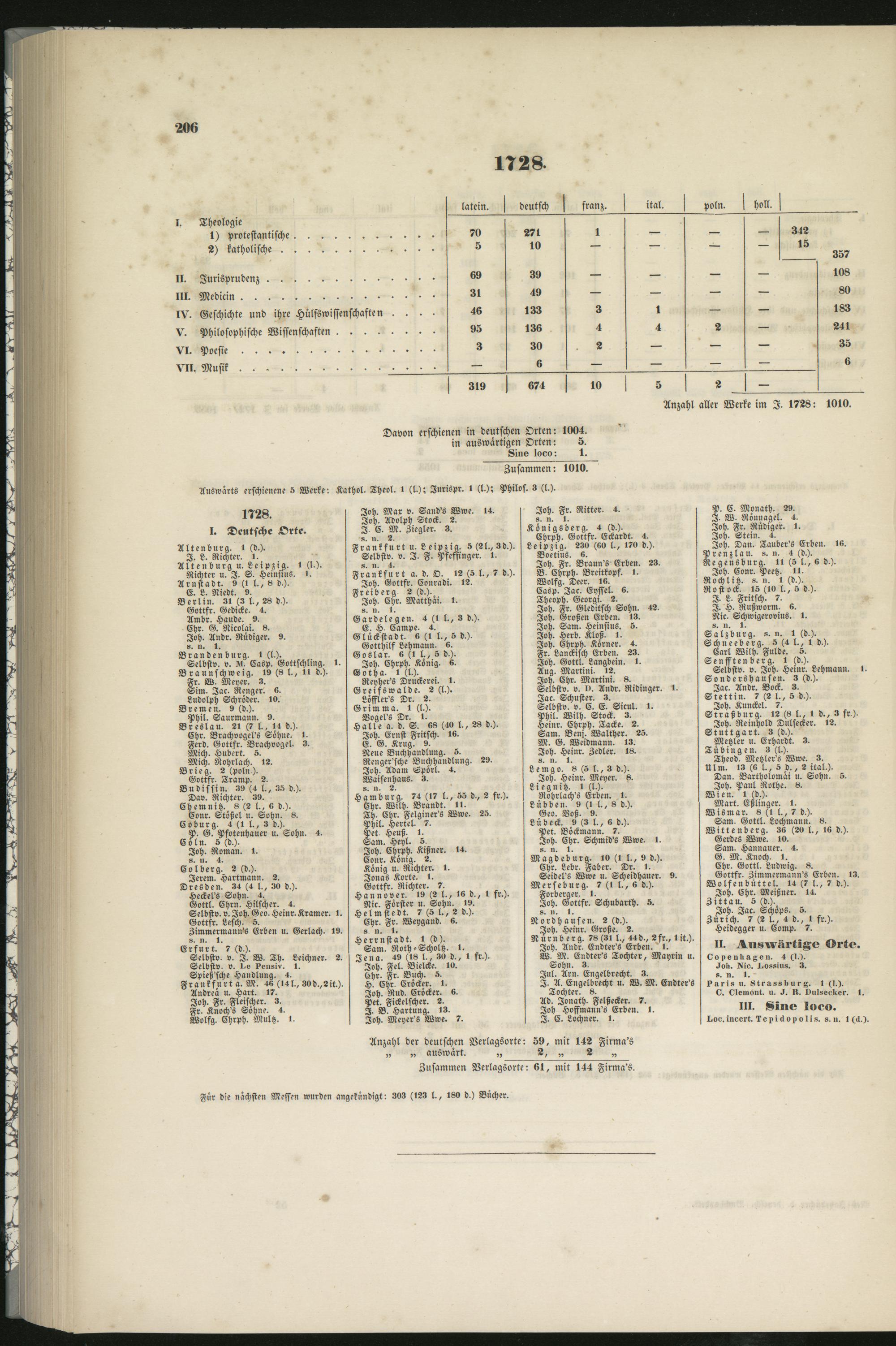 Anzahl aller Werke im I. 1728: 1010.